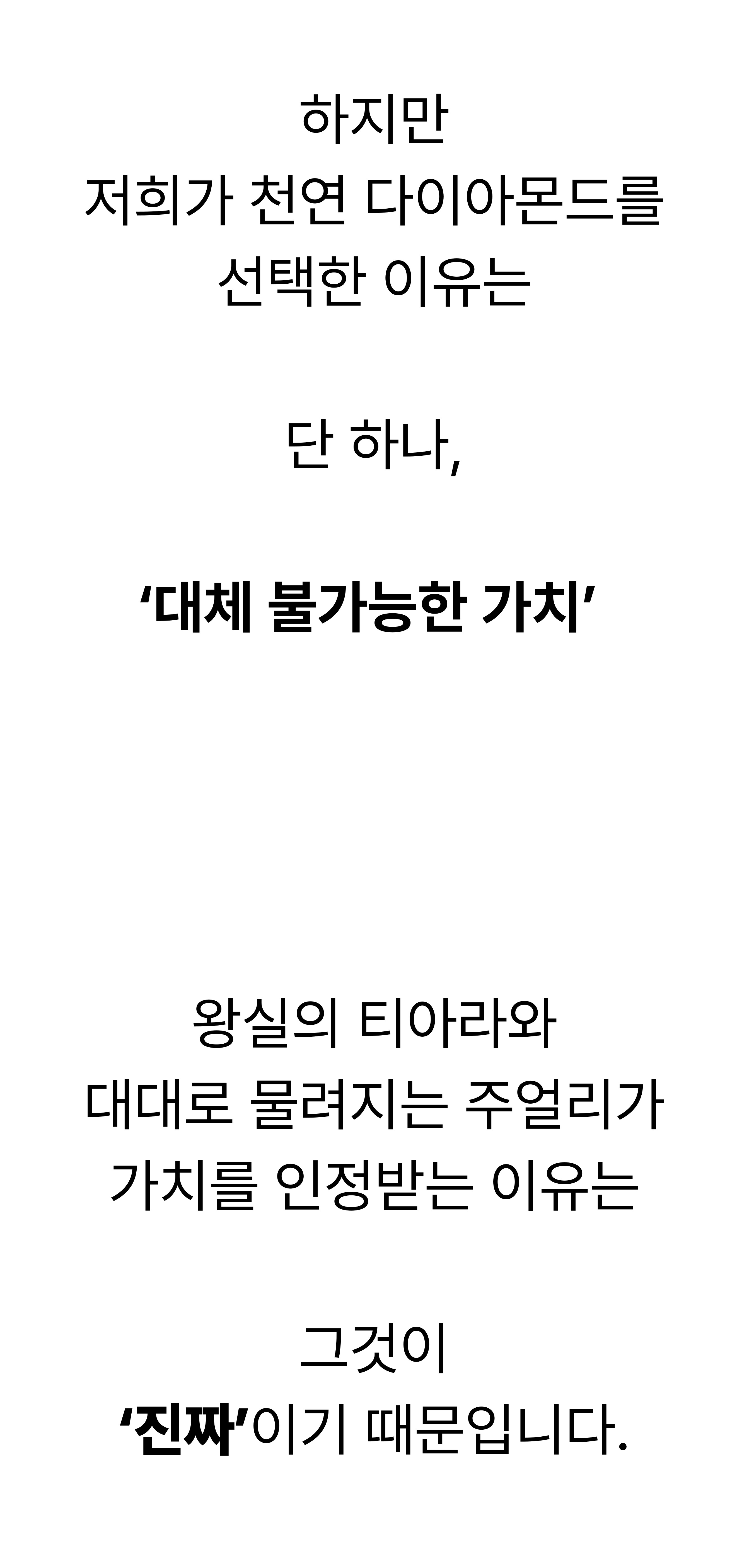 영원히 변치 않는 천연 다이아몬드의 광채.