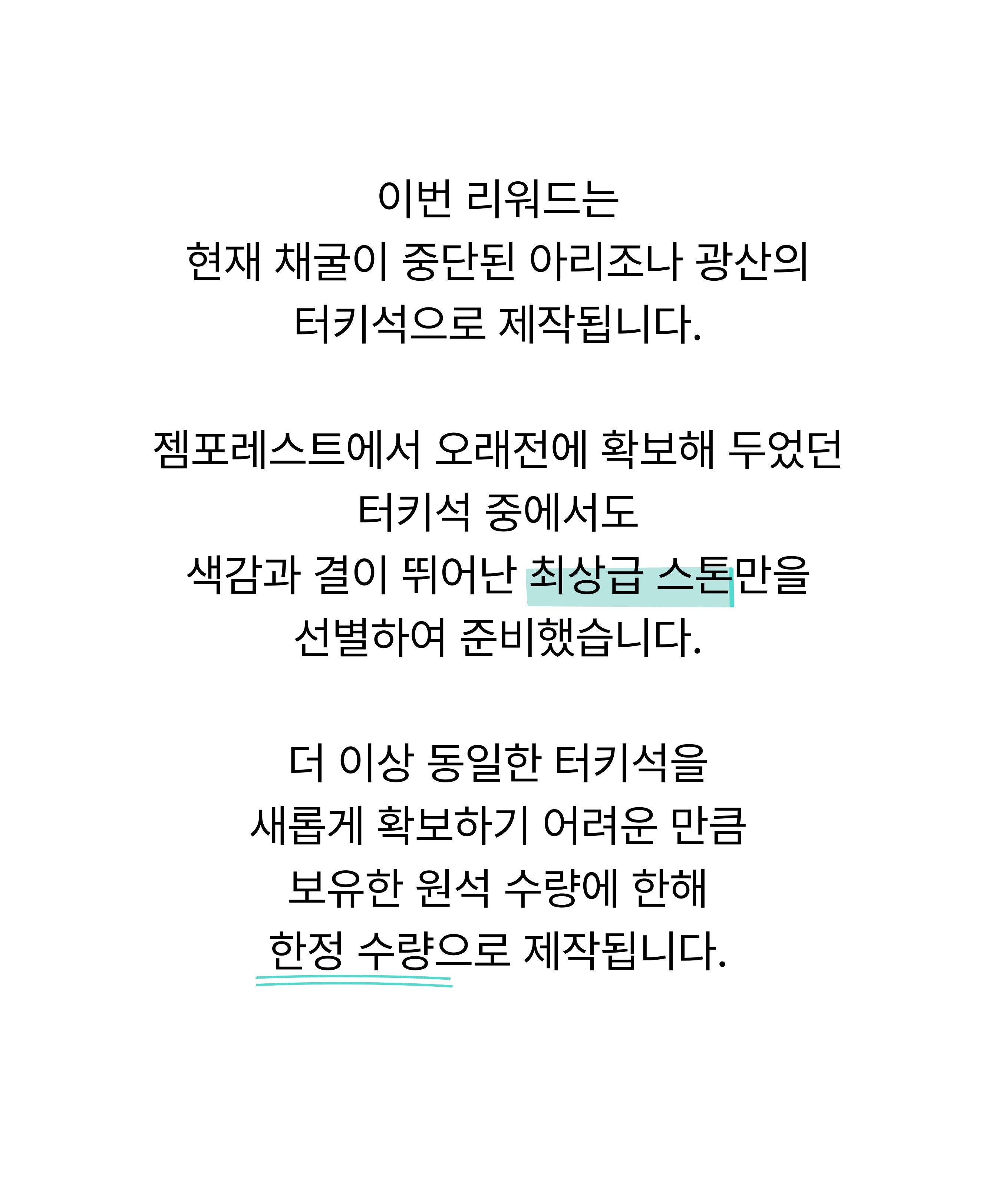 터키석을 여전히 핵심 소재로 사용하고 있습니다.