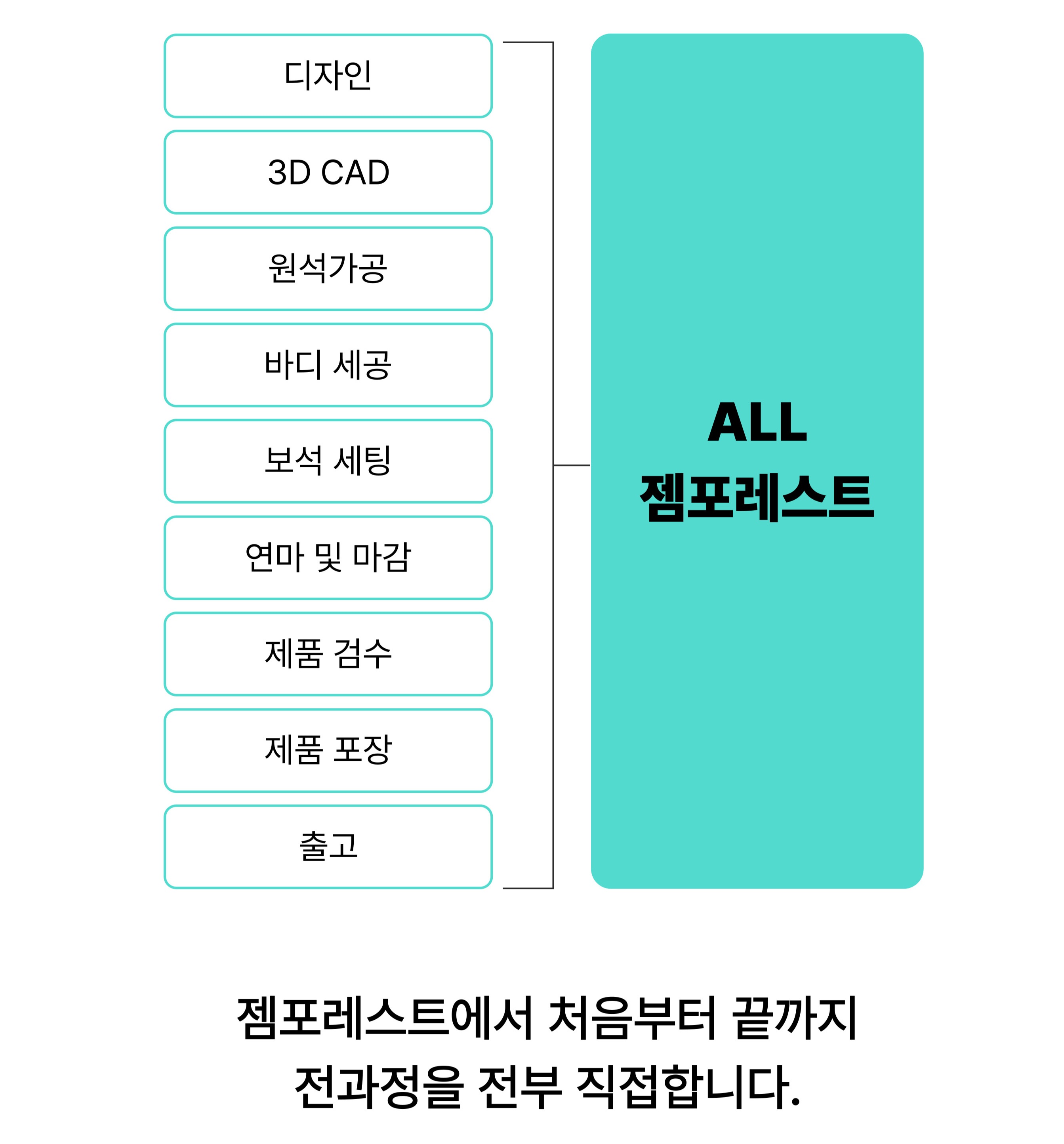 주얼리를 위한 보석에서부터 주얼리 자체를 만들고 검수하여 출고하는 과정까지.