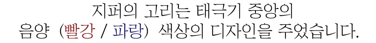 지퍼의 고리는 태극기 가운데의 음양 (빨강 / 파랑) 색상의 디자인을 주었습니다.