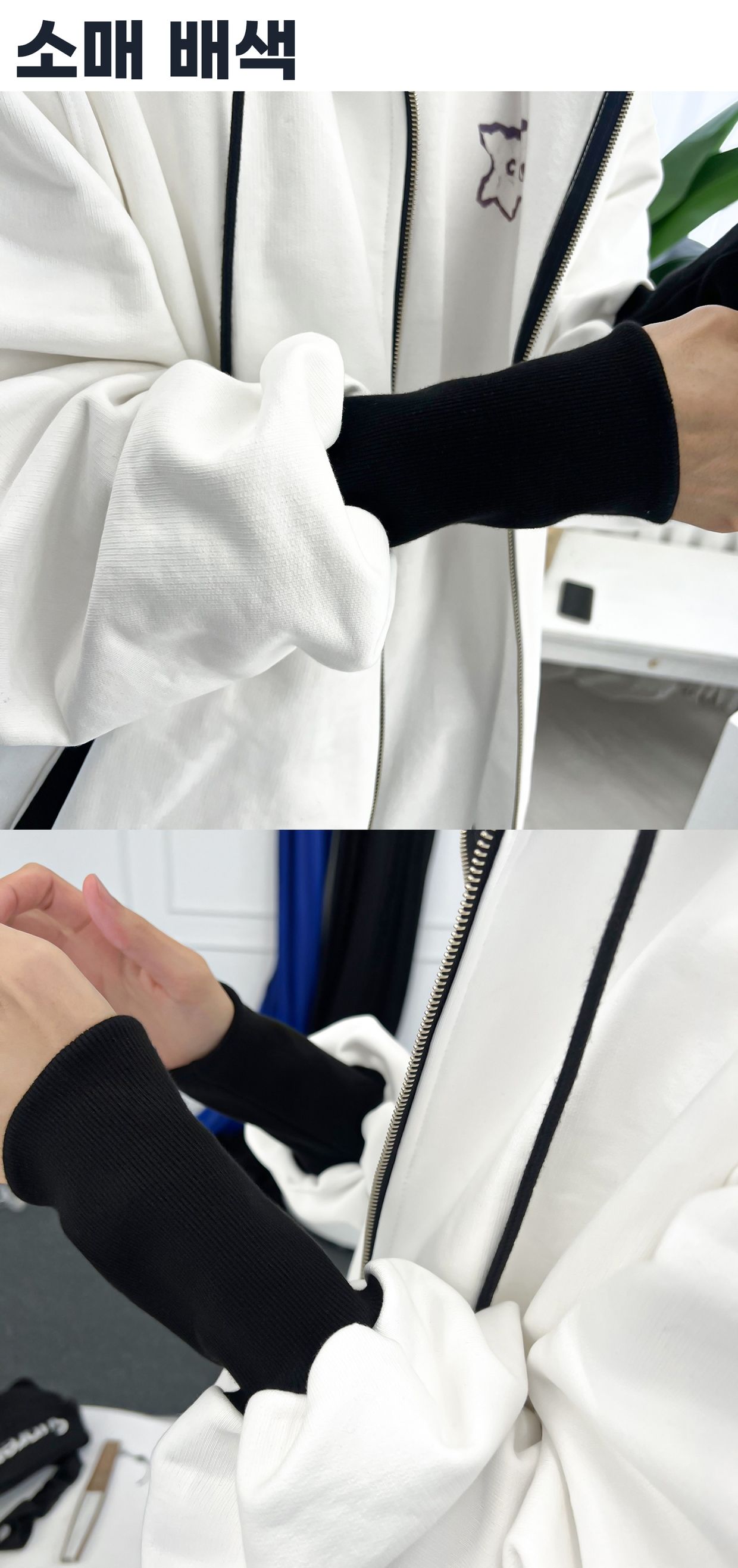 소매 배색으로 달라진 디자인