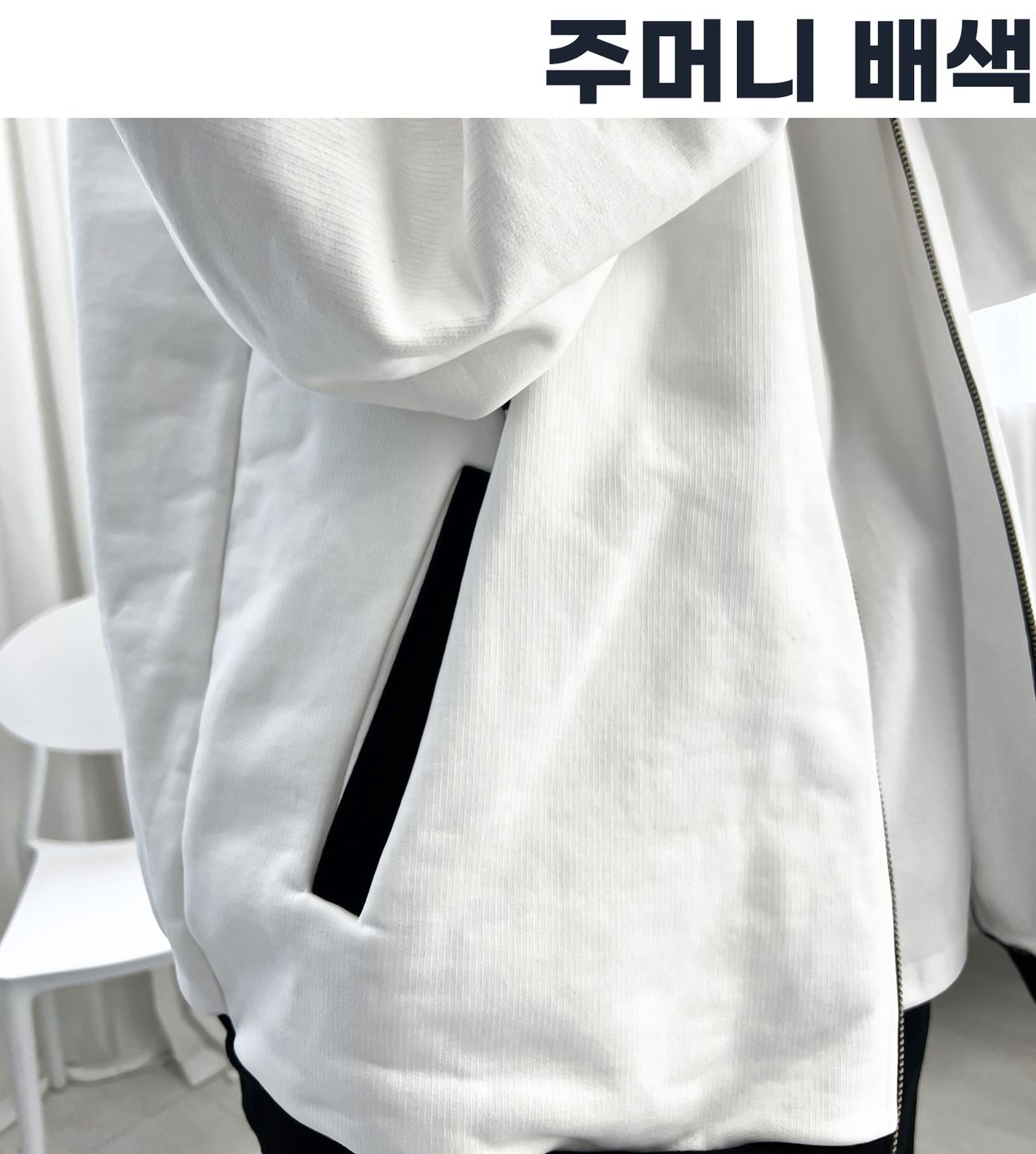 소매, 밑단, 주머니의 배색이 더해져 있었습니다.