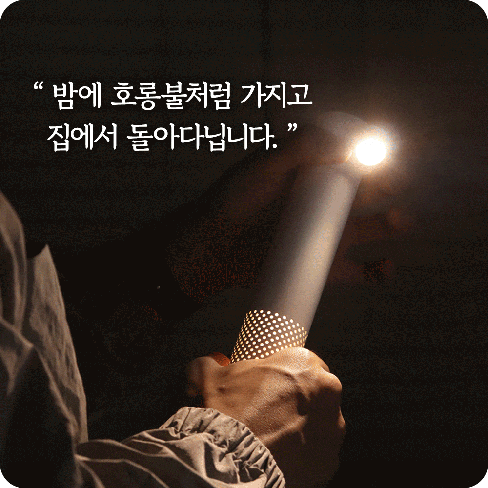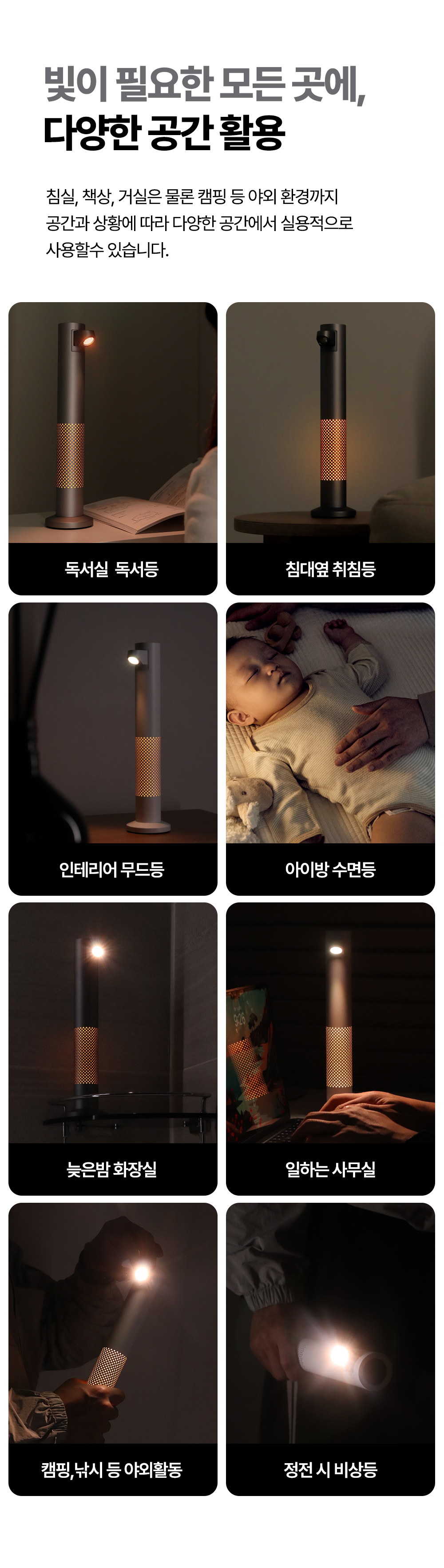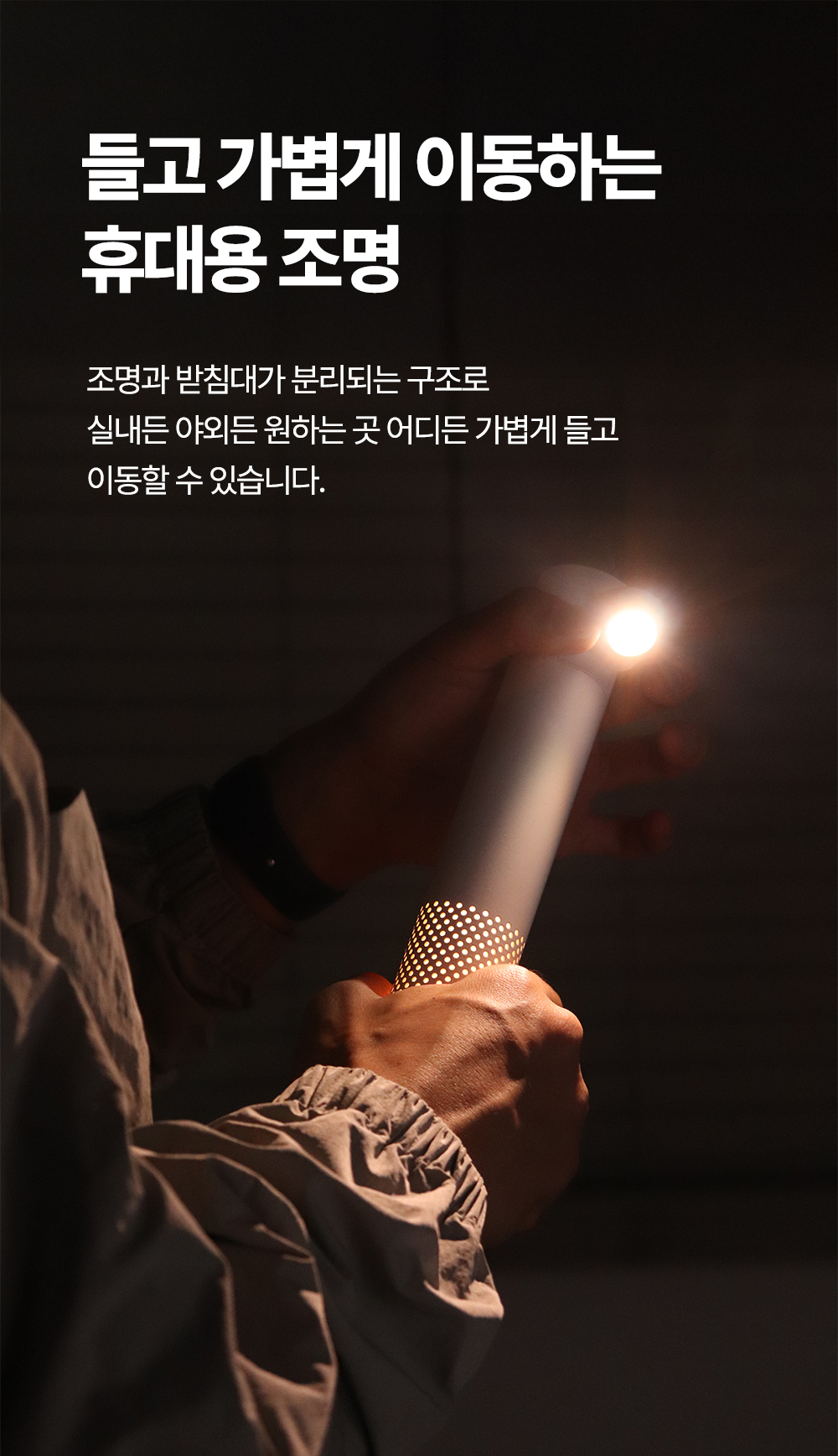 실내는 물론 야외까지, 이동하며 사용할 수 있는 진짜 ‘휴대용’ 조명입니다.