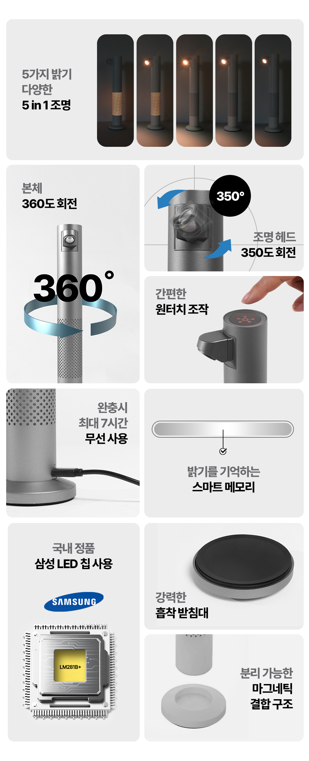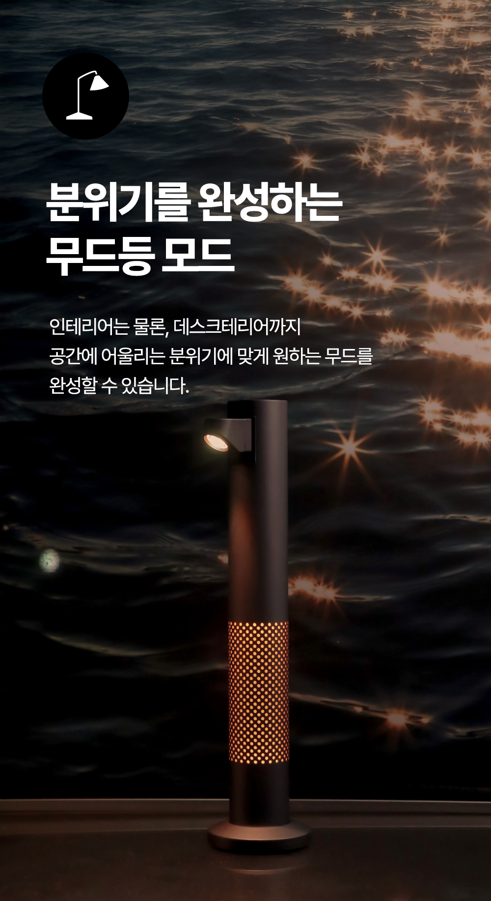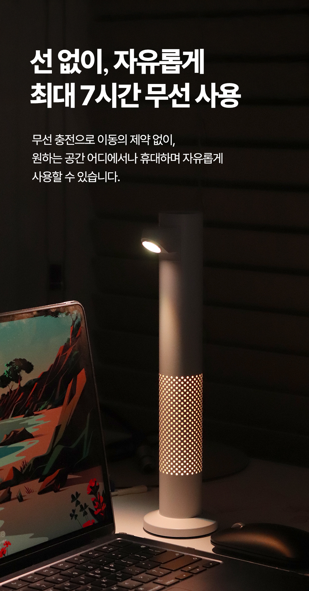 실내는 물론 야외까지, 이동하며 사용할 수 있는 진짜 ‘휴대용’ 조명입니다.
