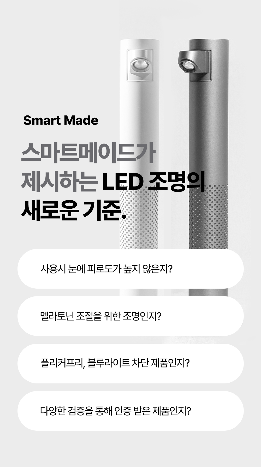 스마트메이드는 눈의 피로를 줄이고, 오래 써도 편안한 광질의 본질부터 차별화했습니다.