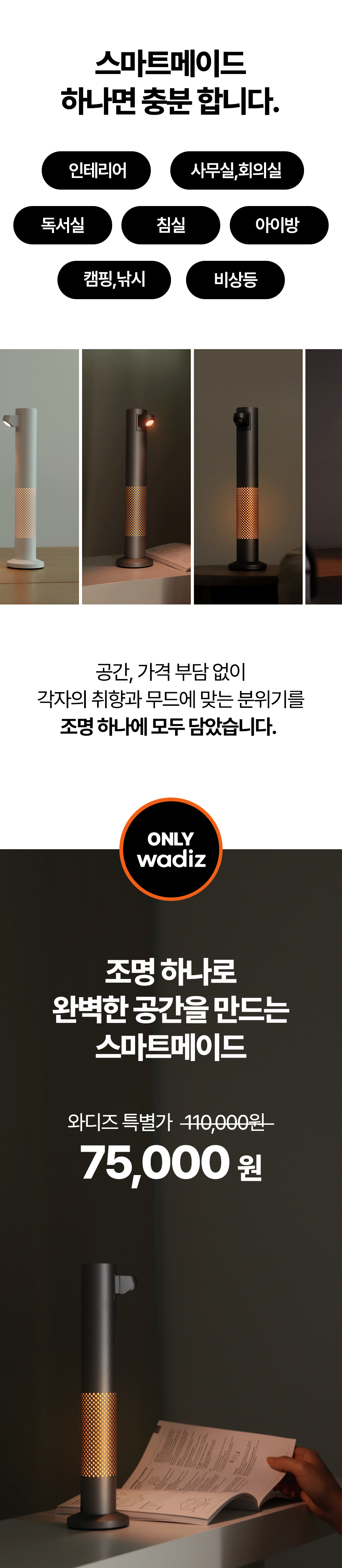 와디즈 스토리를 통해 조명에 대한 스마트메이드의 진심과 열정이 전달되기를 바랍니다.