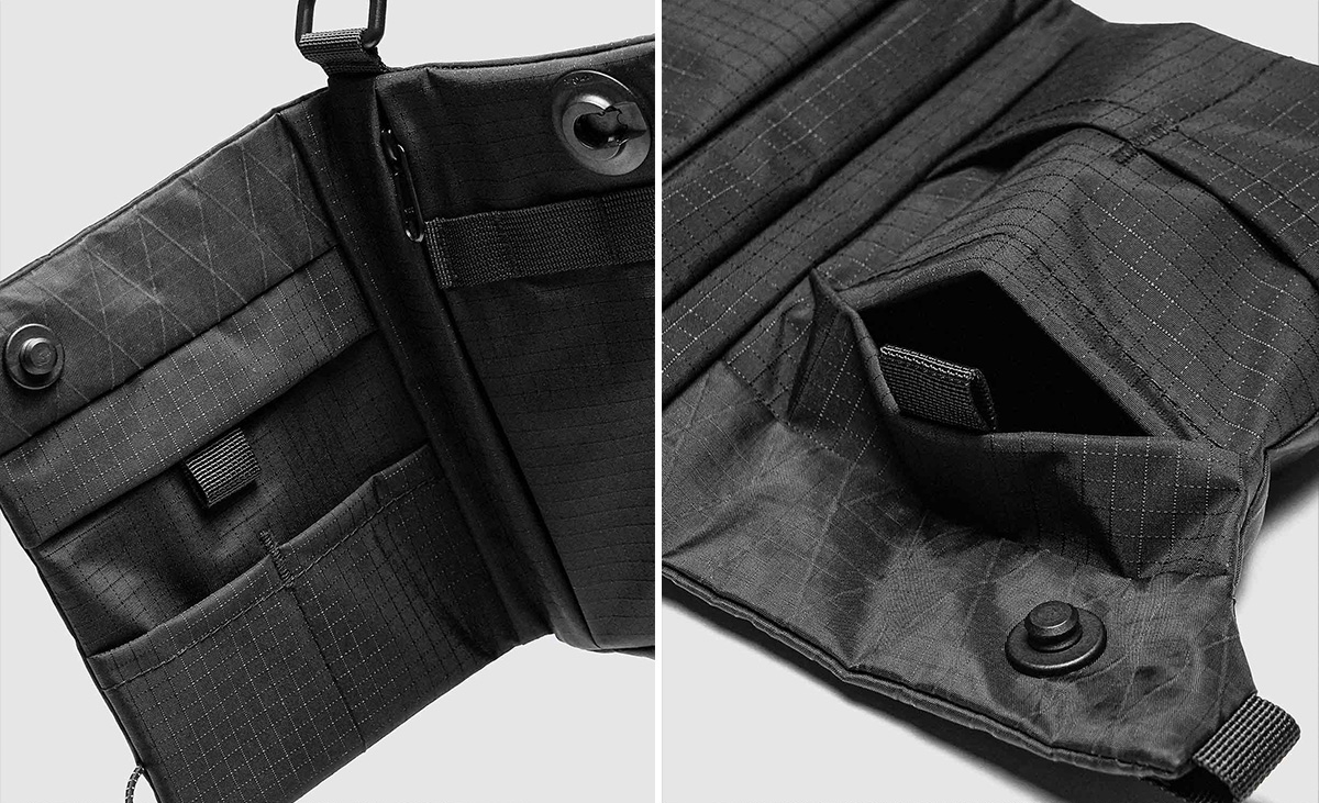 내부 안쪽으로 오픈형 슬롯 두 개와 플립형 포켓 하나가 있어