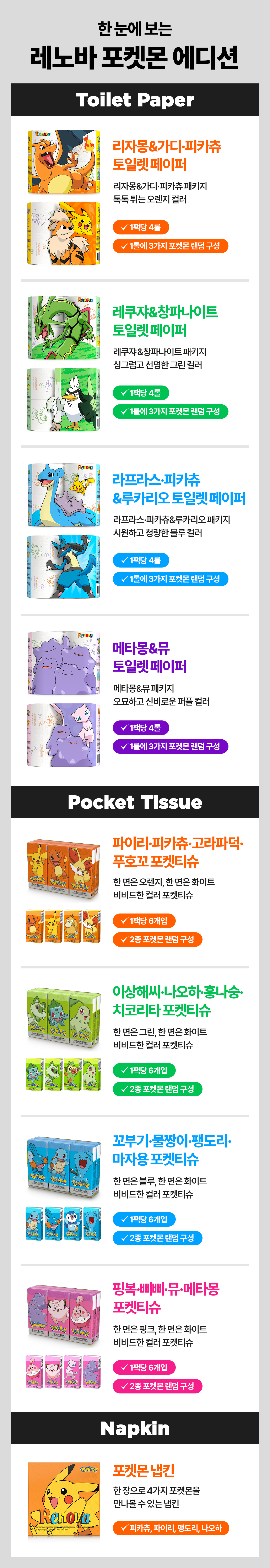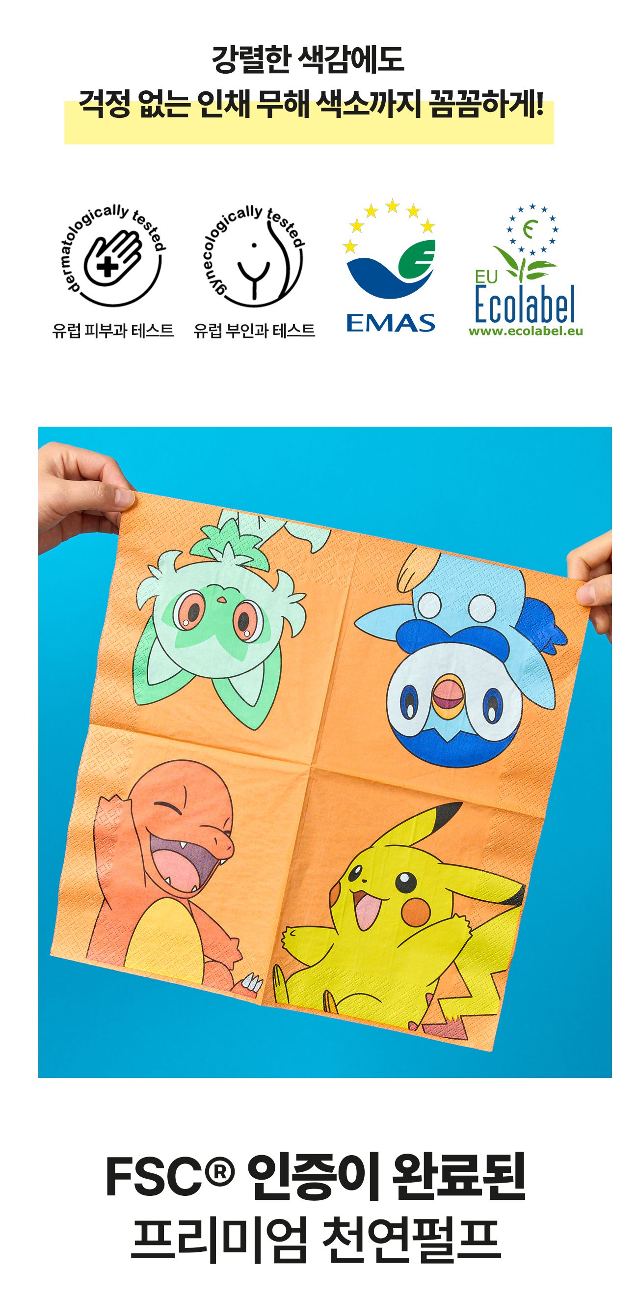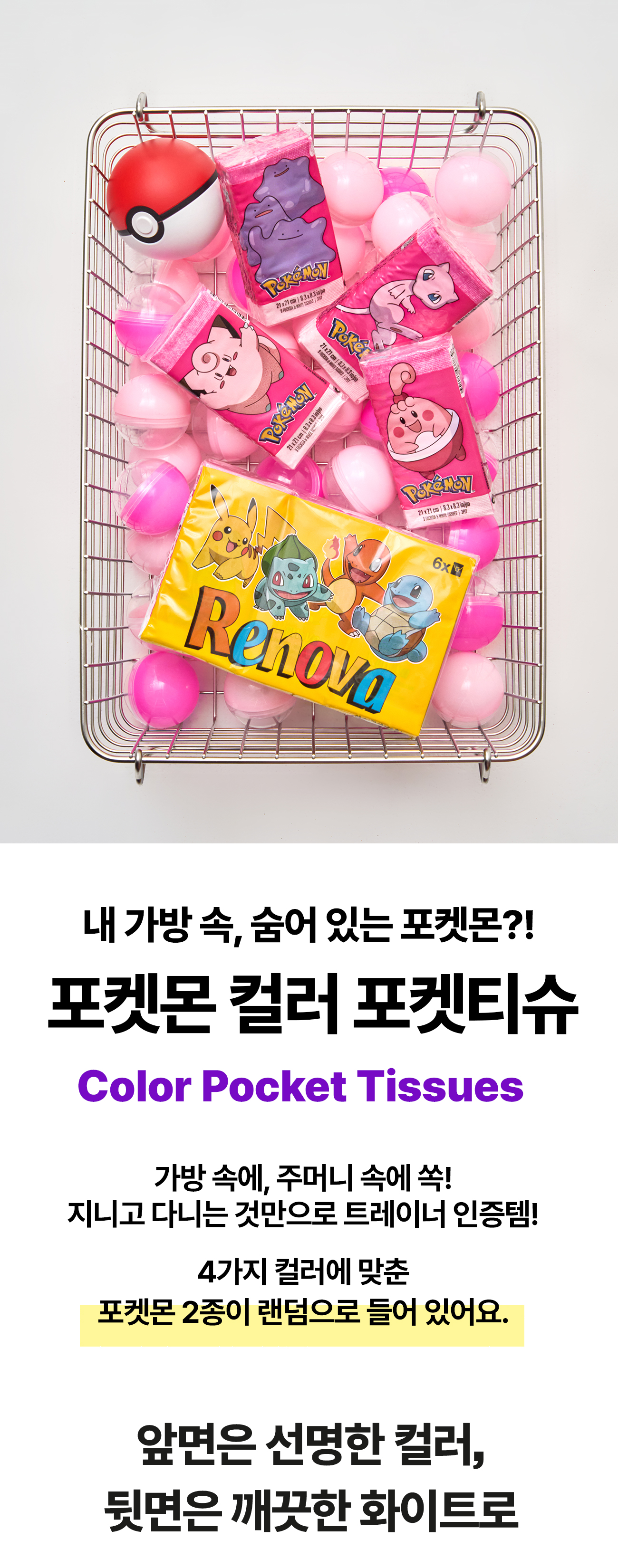 레노바(Renova)는 유럽에서 시작된 프리미엄 티슈 브랜드로, 생활용품에 디자인과 감성을 더해온 글로벌 기업입니다. 단순한 기능을 넘어 ‘일상을 디자인한다’는 철학으로 컬러 티슈 시장을 개척하며 차별화된 브랜드 이미지를 구축해왔습니다. 오랜 제지 산업의 역사와 기술력을 바탕으로 품질 중심의 제품을 선보이고 있습니다. 또한 지속 가능한 산림 관리 원칙에 따라 FSC® 인증 원료를 사용하는 등 친환경 생산 체계를 갖추고 있습니다. 환경 기준을 준수한 제조 공정과 에너지 효율 개선을 통해 지속 가능한 경영을 실천하고 있습니다. 레노바는 소비재도 문화가 될 수 있다고 믿습니다. 이번 포켓몬 에디션 역시 그 철학에서 출발한 프로젝트입니다. 일상에서 가장 자주 사용하는 티슈에 설렘과 놀이의 요소를 더해 새로운 경험을 제안합니다. 기능적 소비를 넘어 감성과 추억을 담는 브랜드, 그것이 레노바가 추구하는 방향입니다.