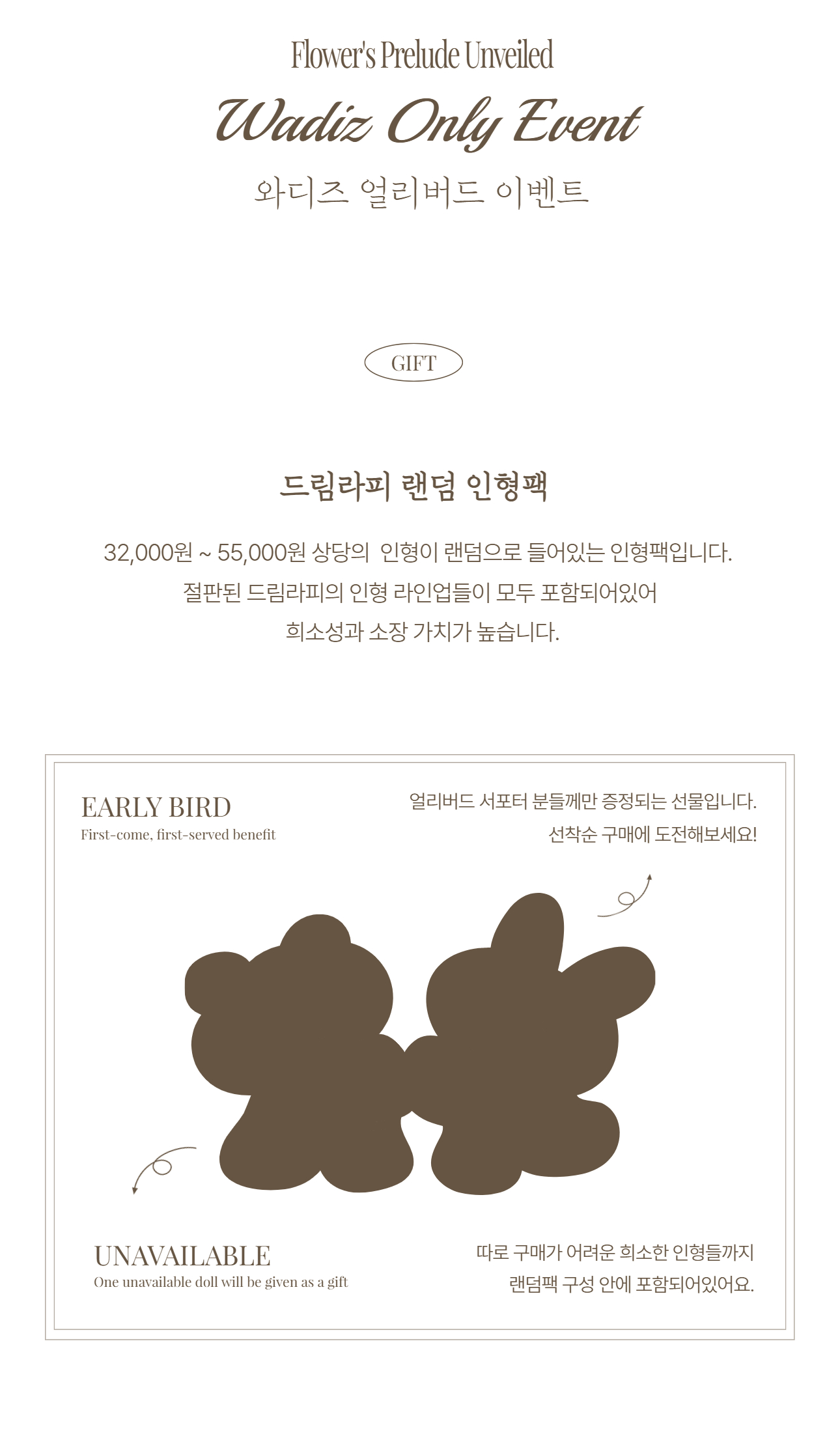 1. 얼리버드 모든 구매자 대상 '랜덤 인형팩' 전원 제공!