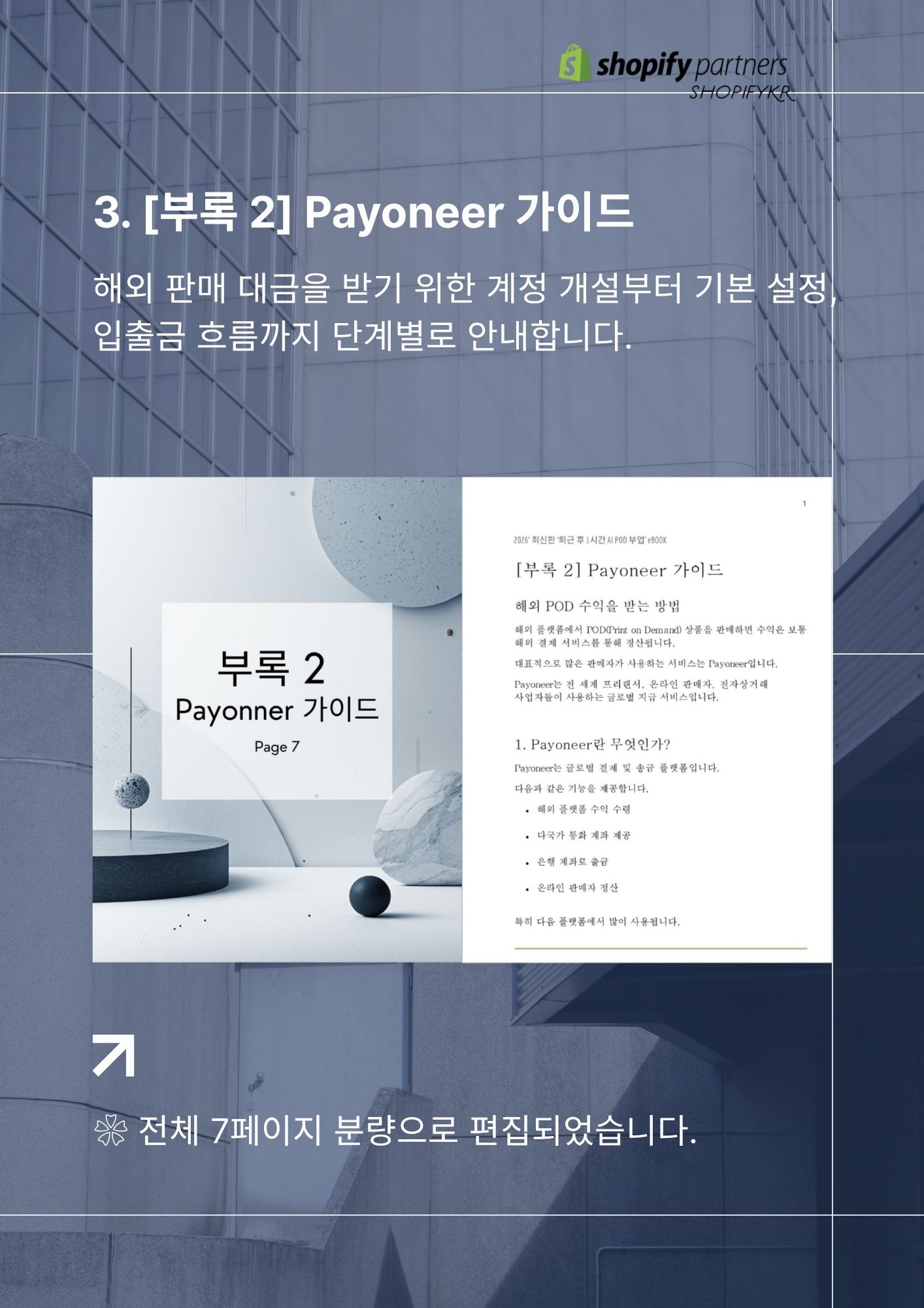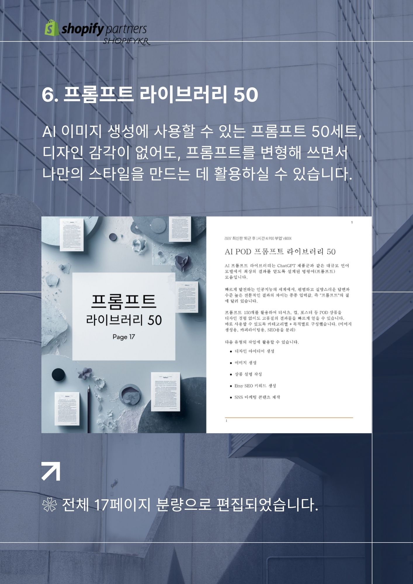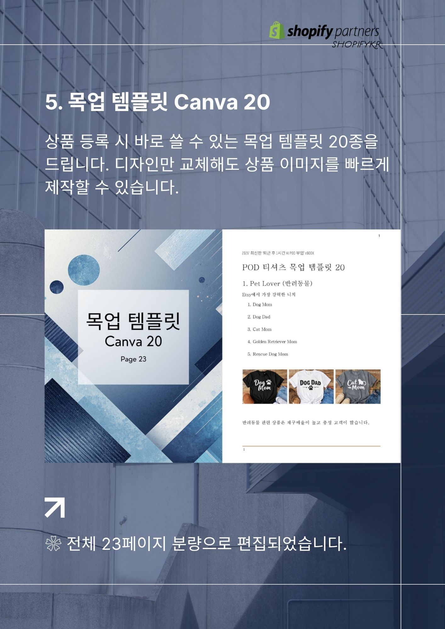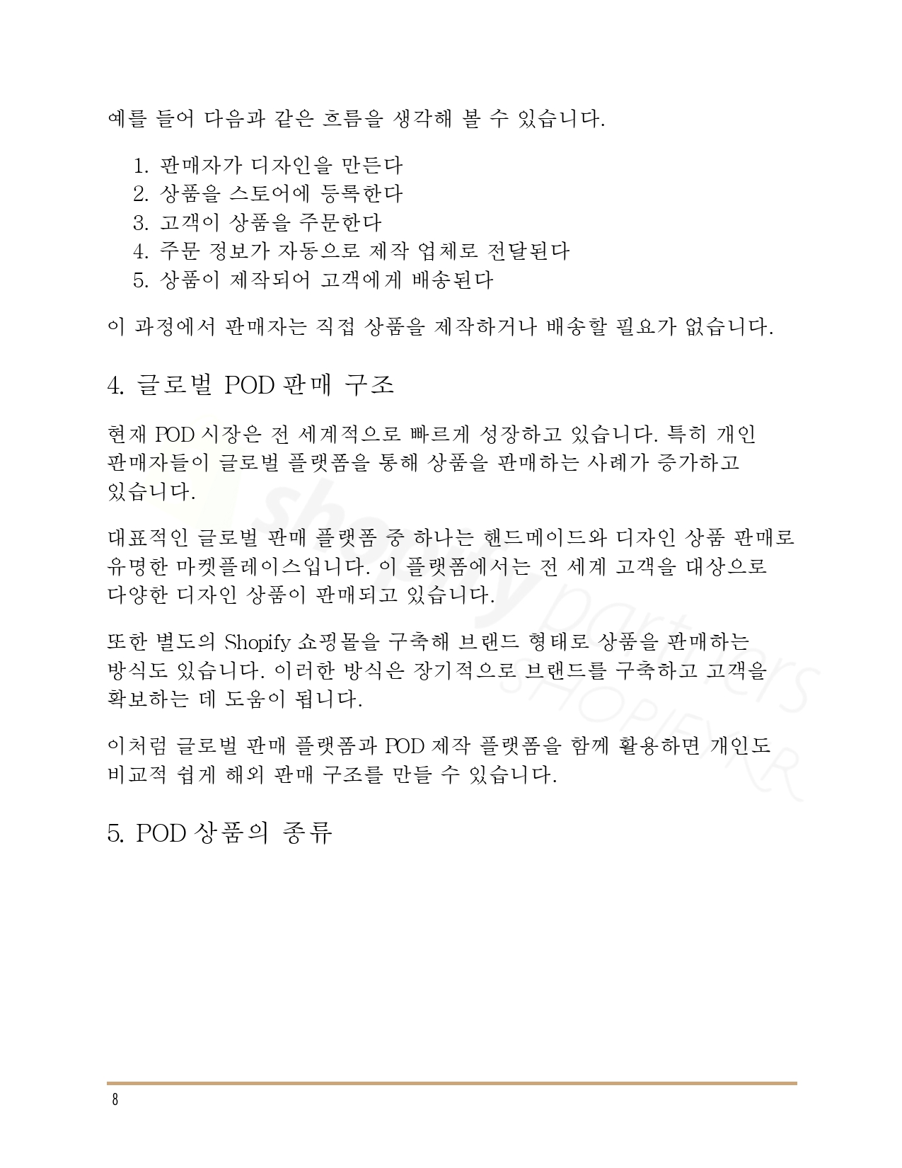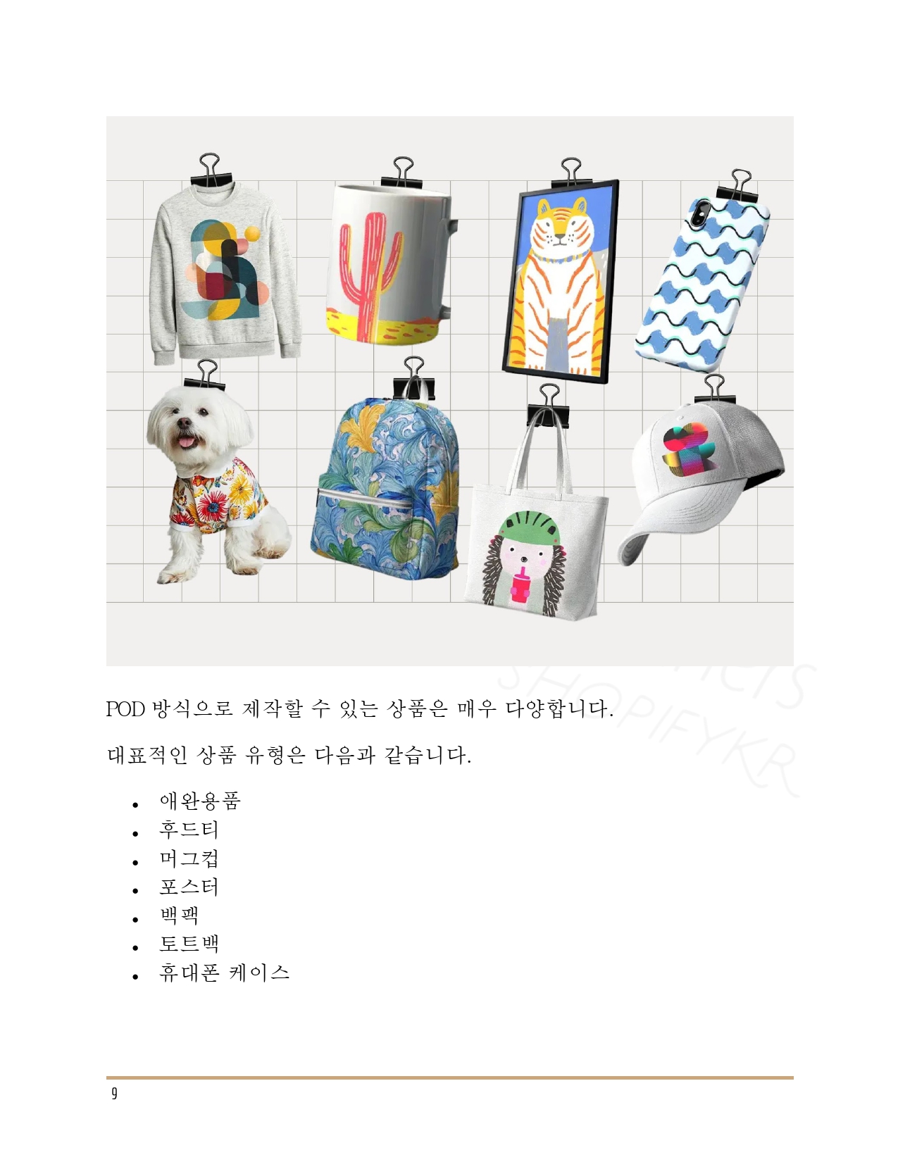 ❀ AI와 POD(Print On Demand) 시스템을 활용해 재고 없이 온라인 상품을 제작하고, 글로벌 플랫폼에서 판매하는 방법을 다룬 쇼피파이코리아에서 설계한 ‘3축 POD 비즈니스’ 실전 가이드입니다.