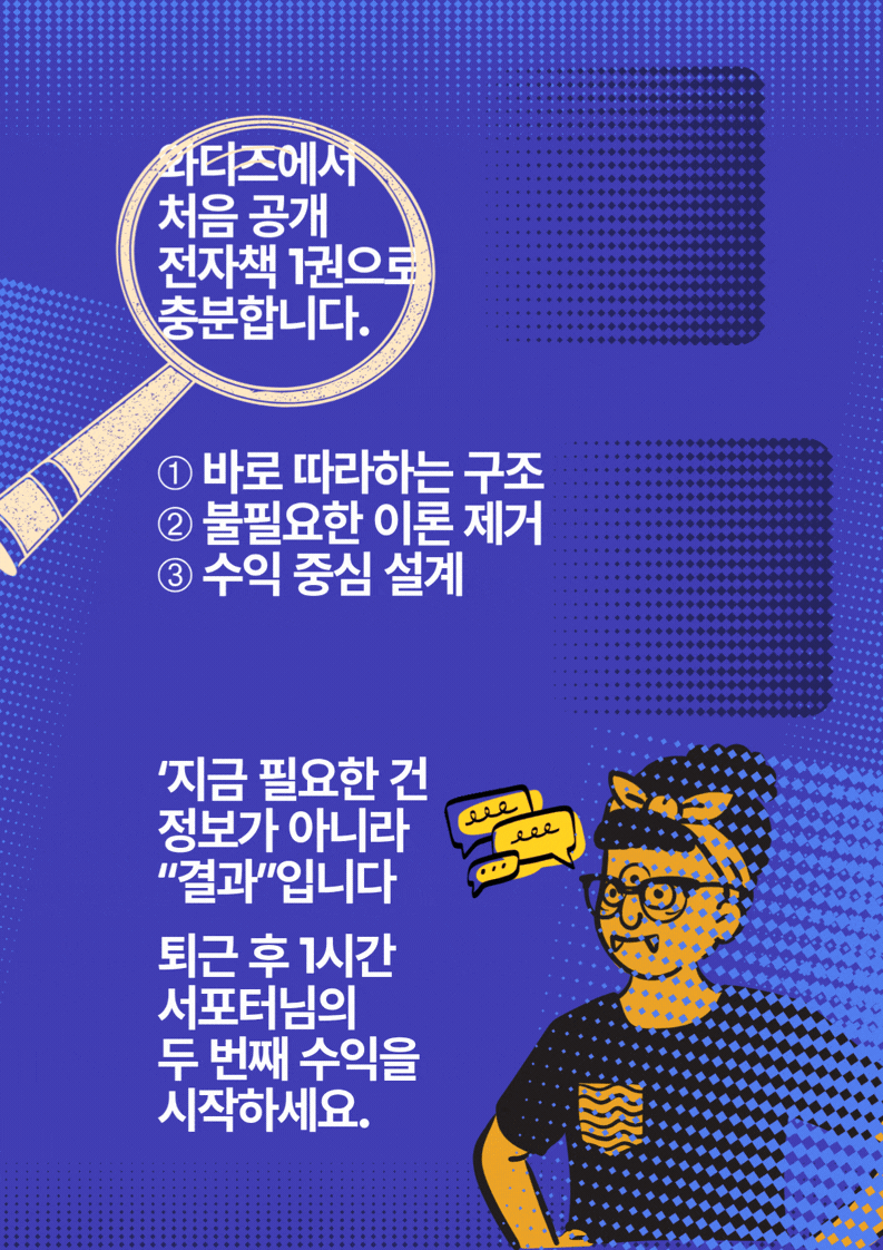 유료 툴 결제가 망설여지신다면, 전자책에서 소개하는 무료 체험 플랜을 먼저 활용해 첫 수익을 낸 뒤 확장하시는 방법을 추천드립니다.