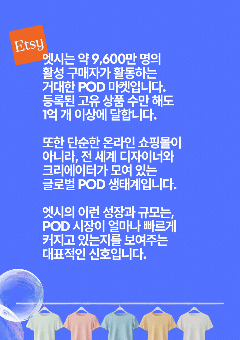 현재 글로벌 전자상거래 시장에서는 디자인만 있으면 생산과 배송이 자동으로 이루어지는 POD 모델이 빠르게 확산되고 있으며, 그 중심에는 Etsy가 있습니다.