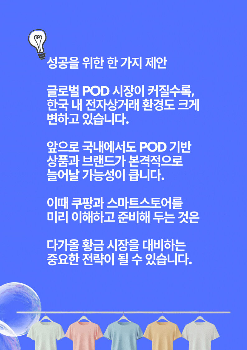 따라서 이미 POD를 운영 중인 판매자분들께도, 신규 카테고리 확장이나 AI 기반 디자인·마케팅 실험을 위한 보완·확장 전략으로 활용하실 수 있습니다.