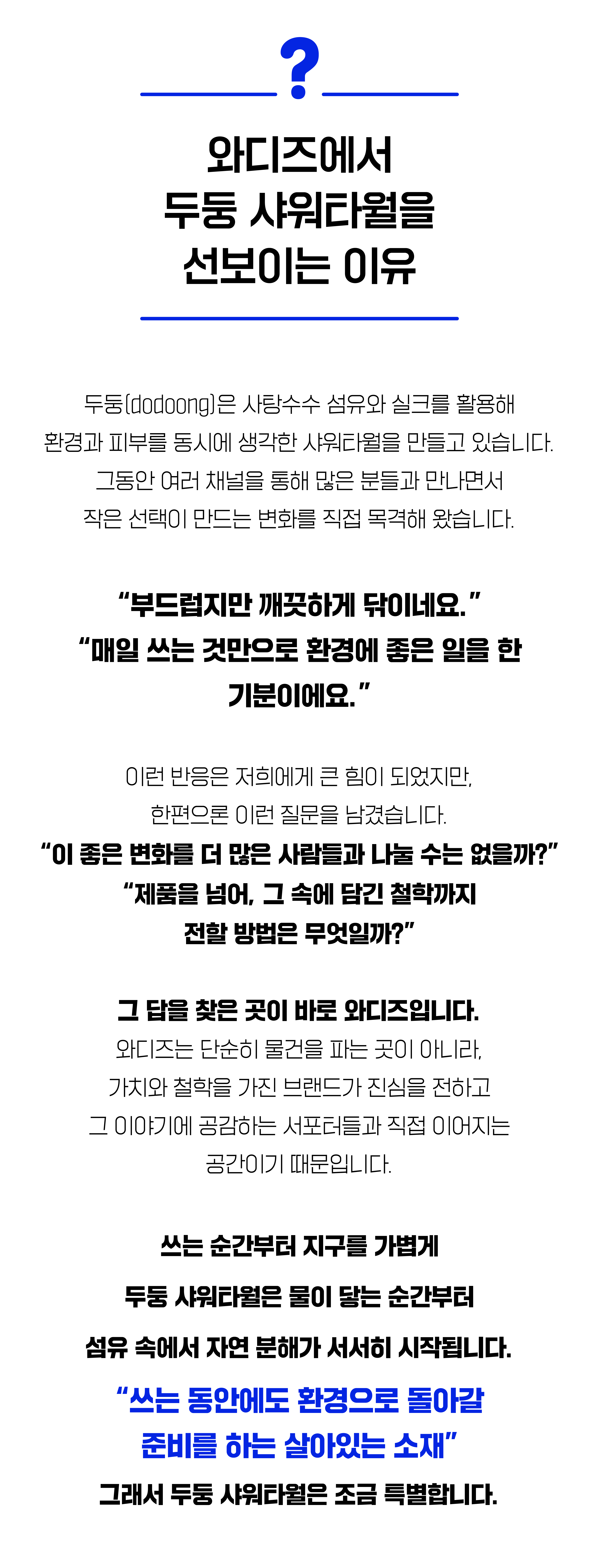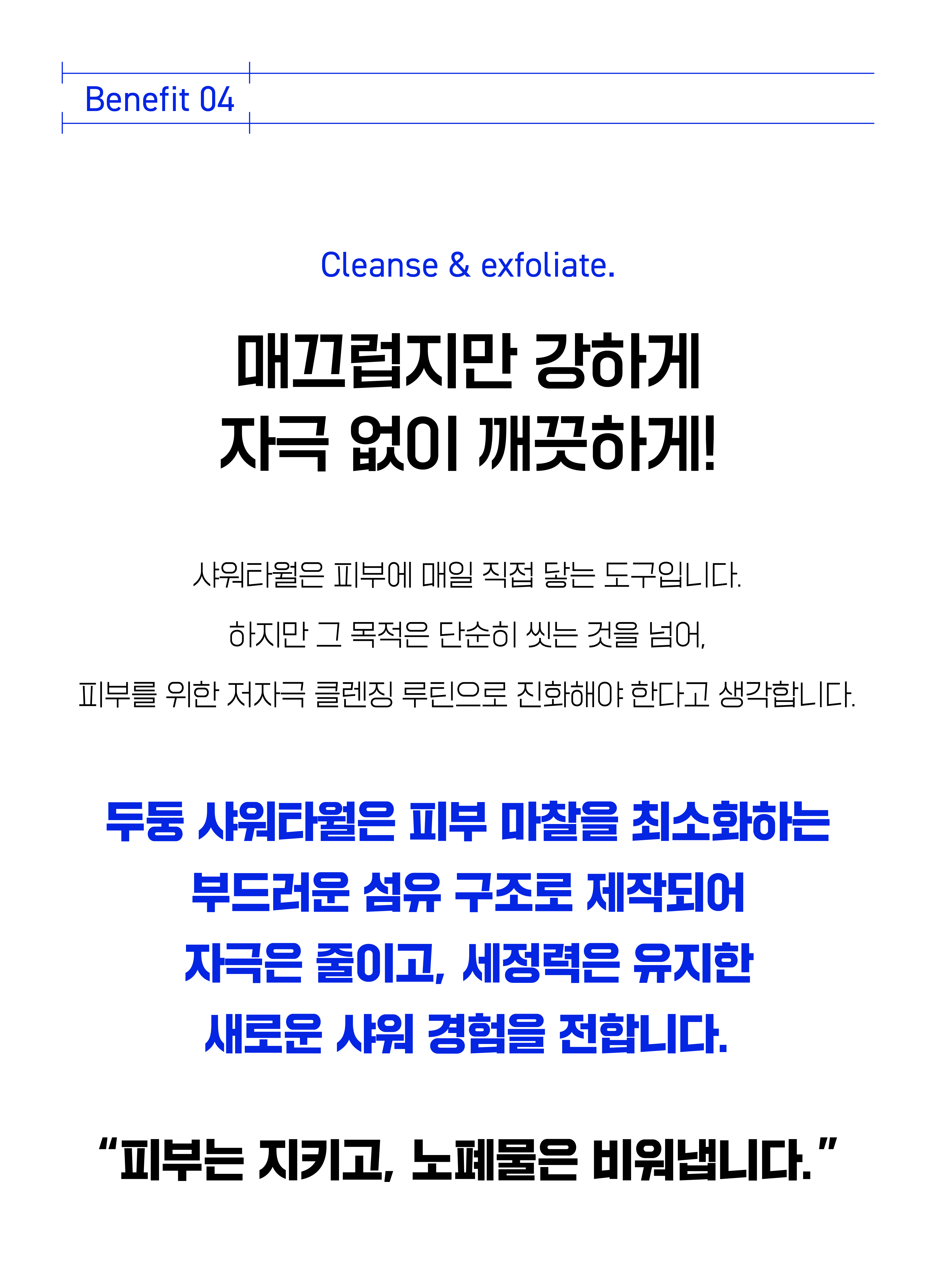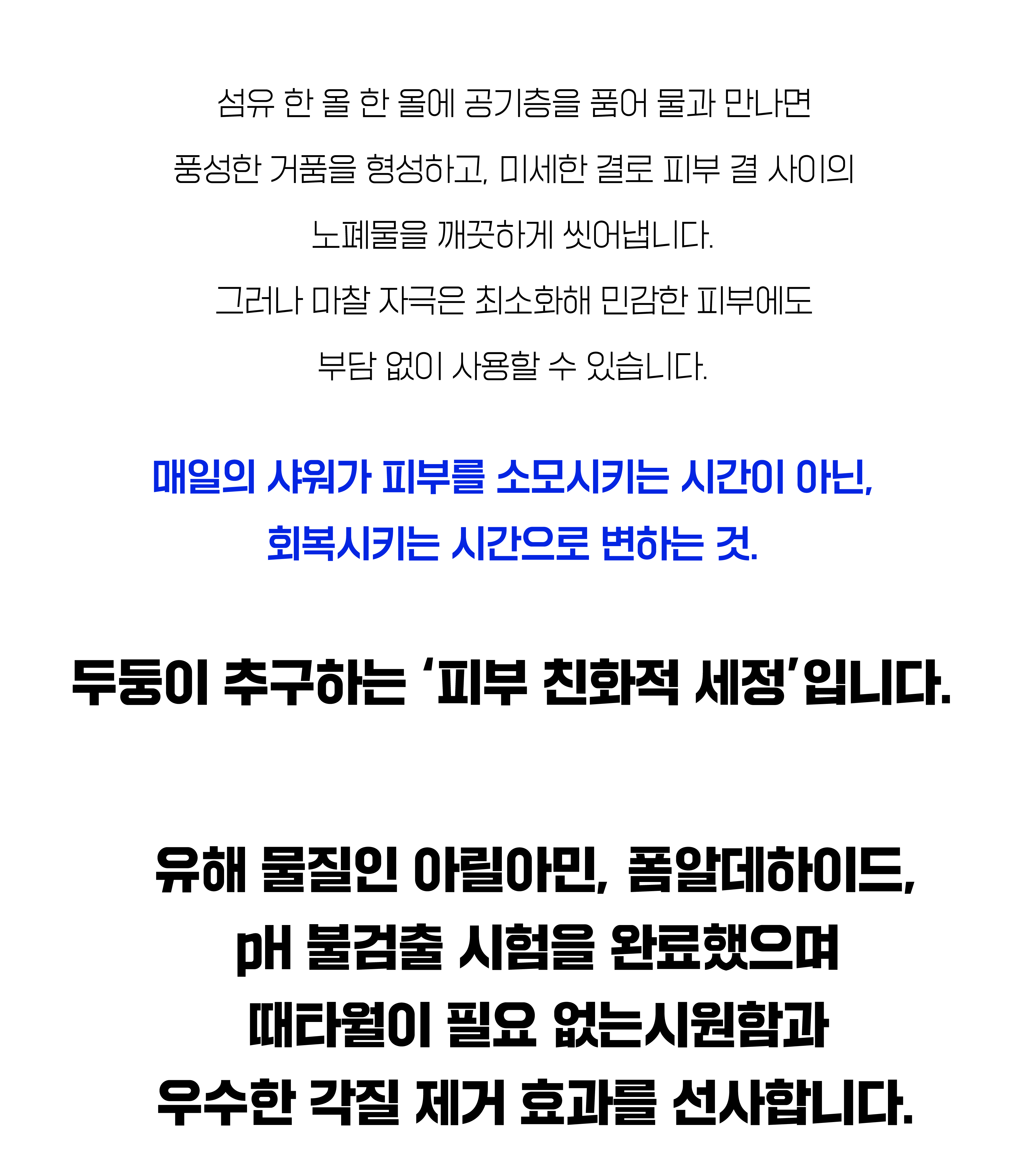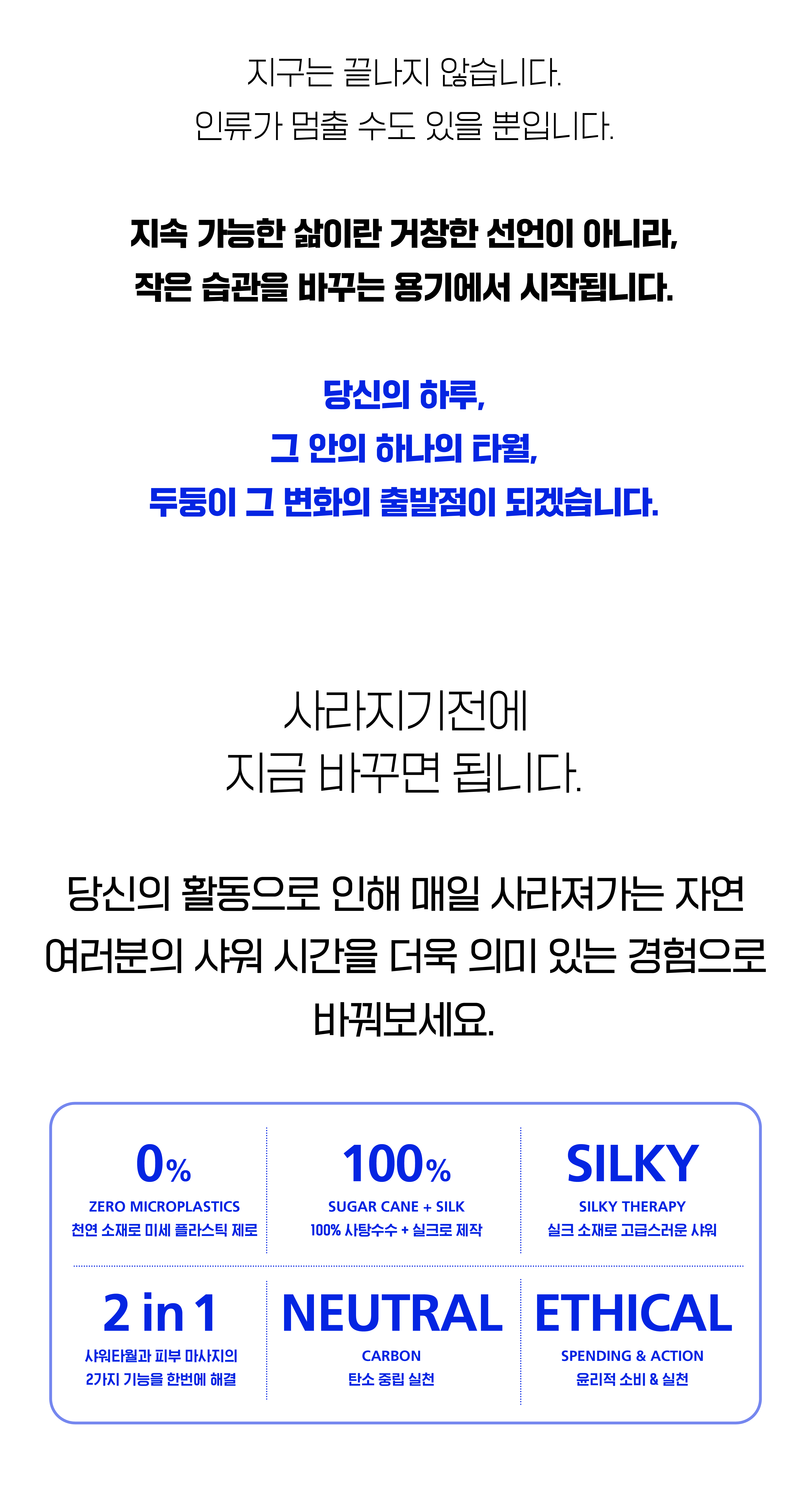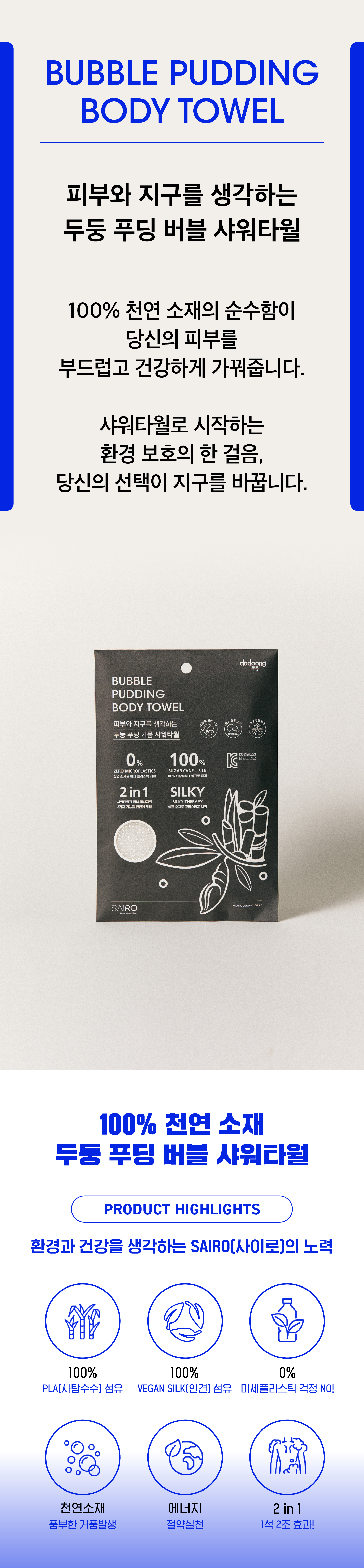 1. 🧼 친환경 샤워타월 - 사탕수수 섬유와 실크로 만든 미세플라스틱 없는 샤워타월 2. 🌿 피부 자극 최소화 - 부드럽고 피부 친화적 소재로 각질 제거와 피부 보호 3. 🎁 2-in-1 기능과 KC 안전 테스트 - 샤워타월과 피부 마사지 기능 동시 제공, 안전성 인증 완료