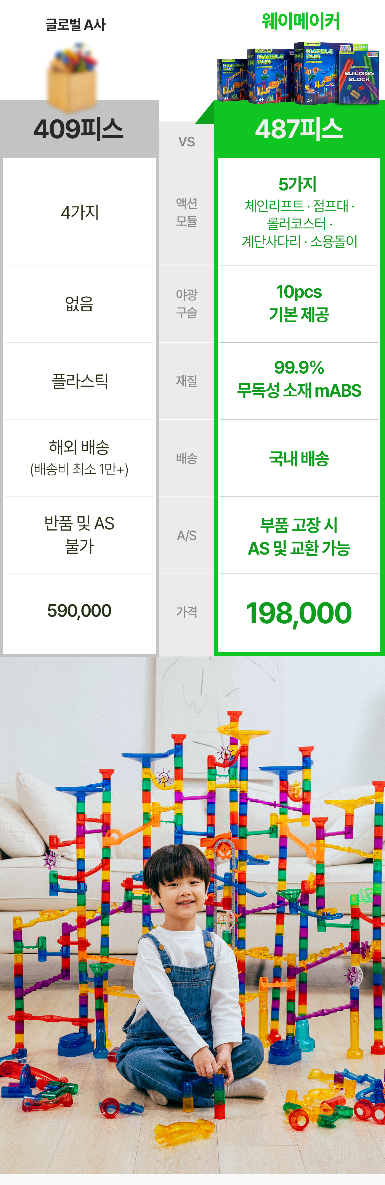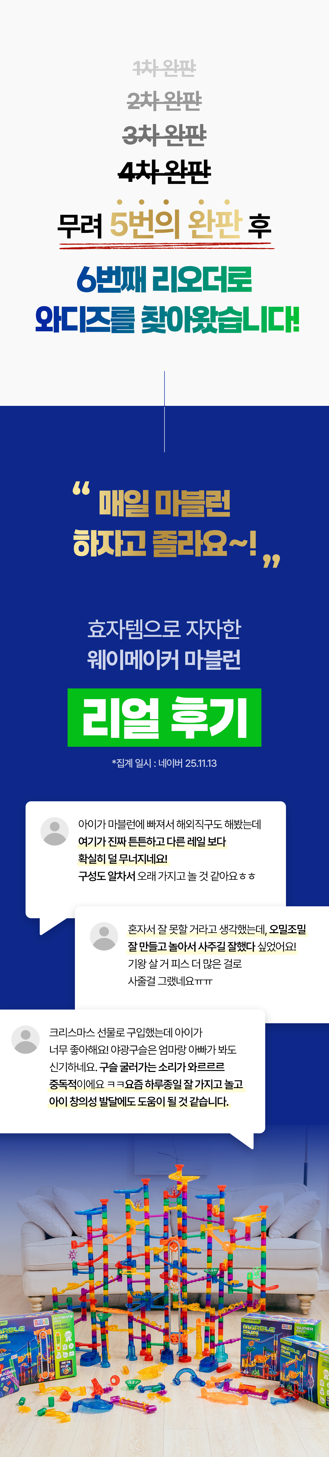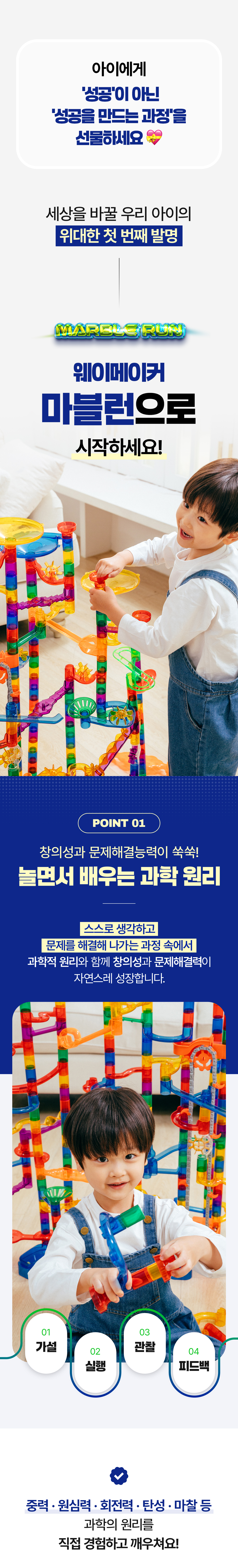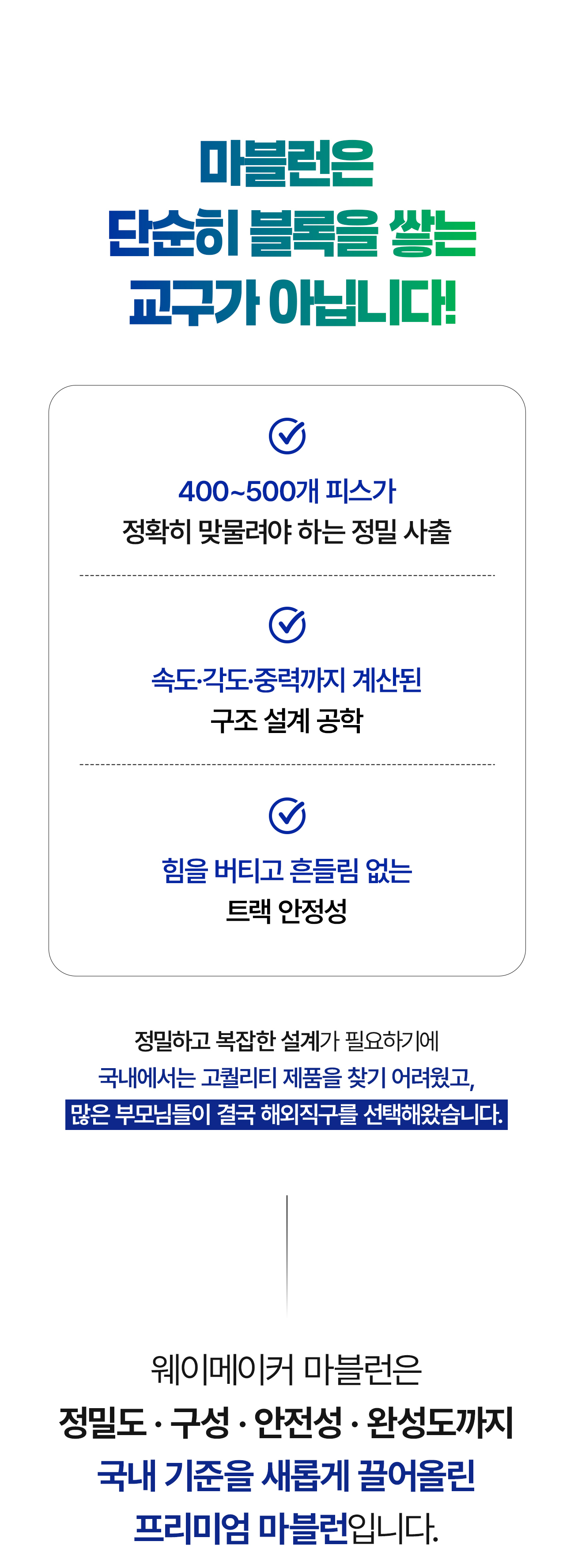 하지만 시중에는 ‘예쁘기만 한 완제품’이 대부분이고, 아이의 사고를 열어주는 교육용 마블런은 거의 없었습니다.