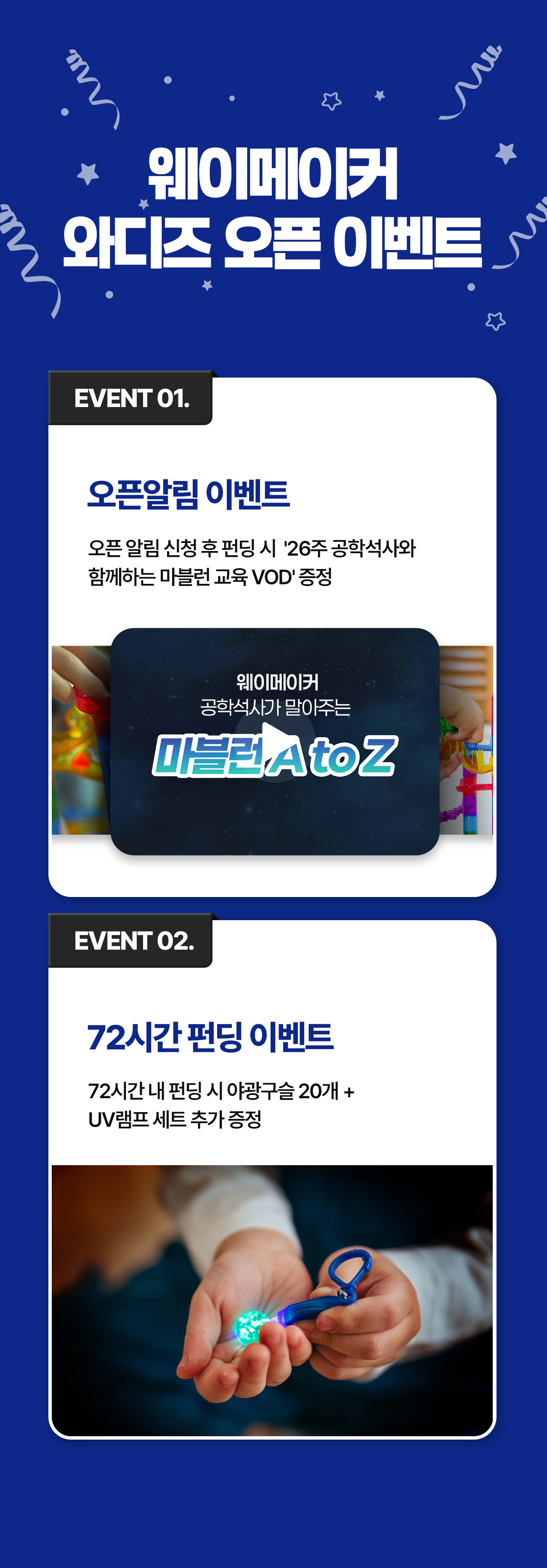 몇 년간 수업에서 마블런을 활용하며 아이들의 놀라운 변화를 직접 보면서 “이 경험을 더 많은 아이들이 누리면 좋겠다”는 마음으로 웨이메이커만의 마블런 교구를 만들기로 결정했습니다.