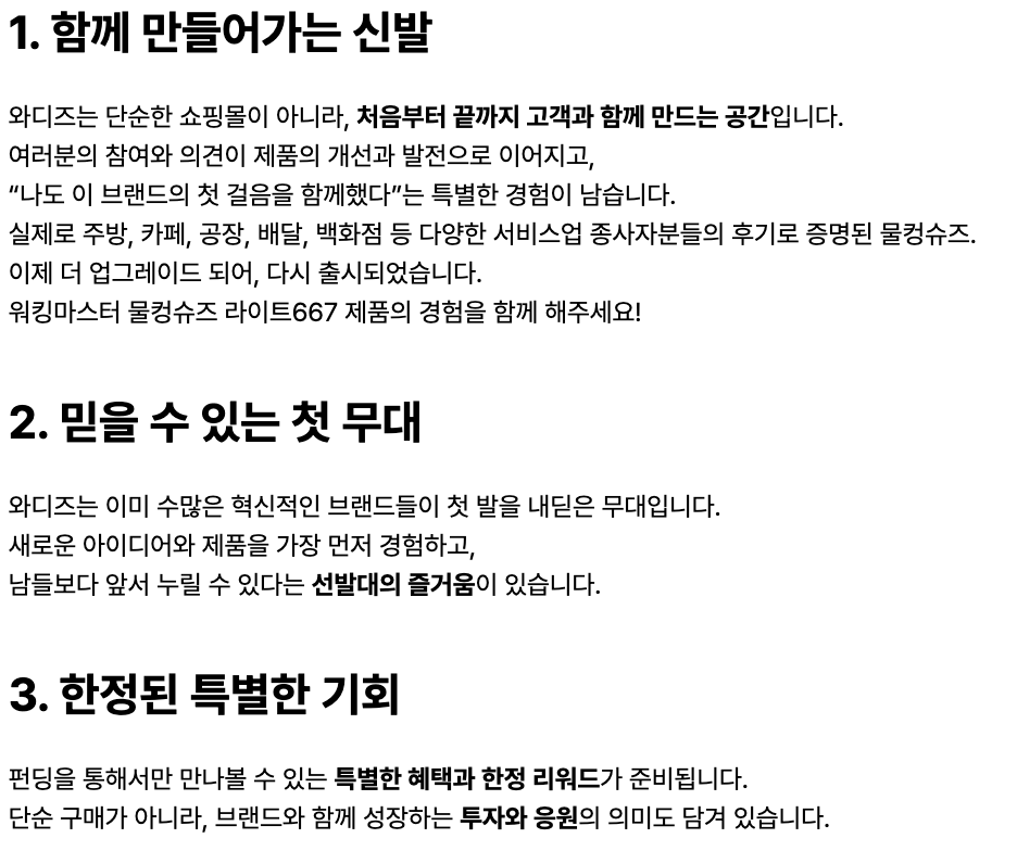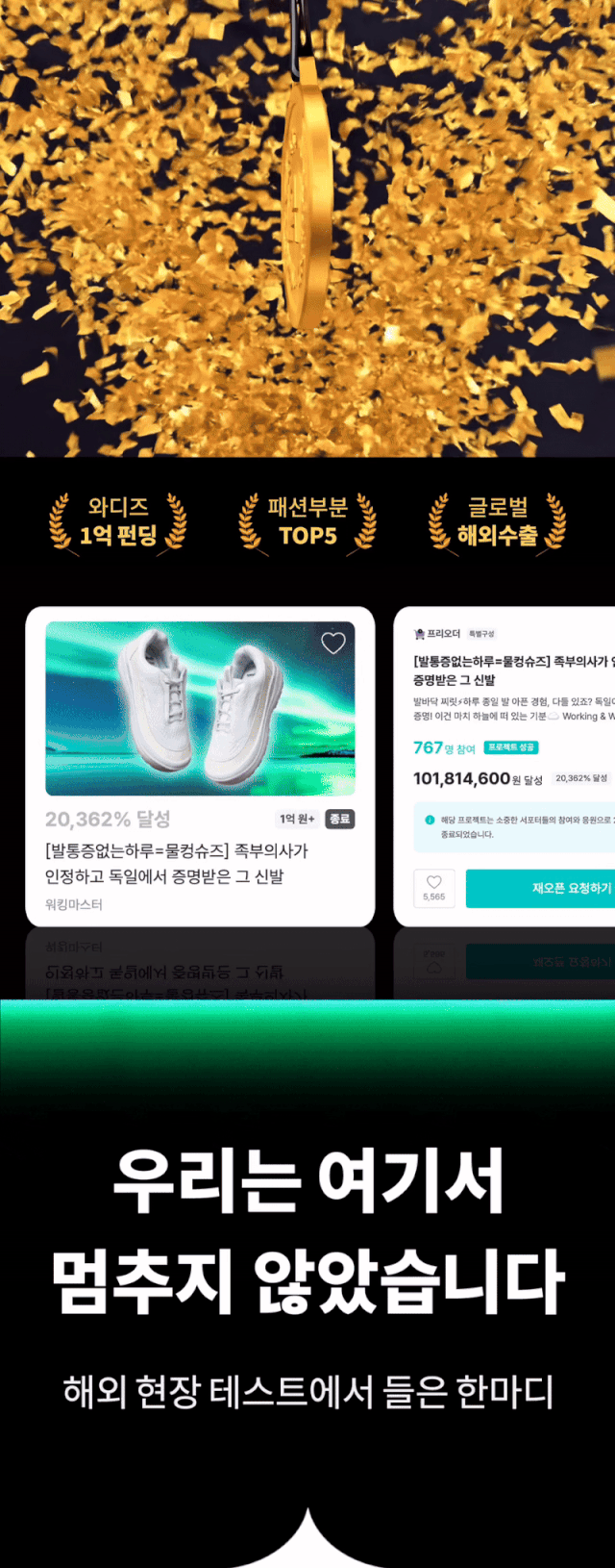1. 👟 유럽 인정 쿠션 기술 신발 - 유럽에서 먼저 인정받은 혁신적 쿠션 기술 적용 신발 2. 🦶 장시간 착용 편안함 제공 - 푹신함과 탄성으로 오래 걸어도 발 피로감 감소 3. 🔥 와디즈 단독 최저가 혜택 - 와디즈에서만 만날 수 있는 단독 최저가 제공
