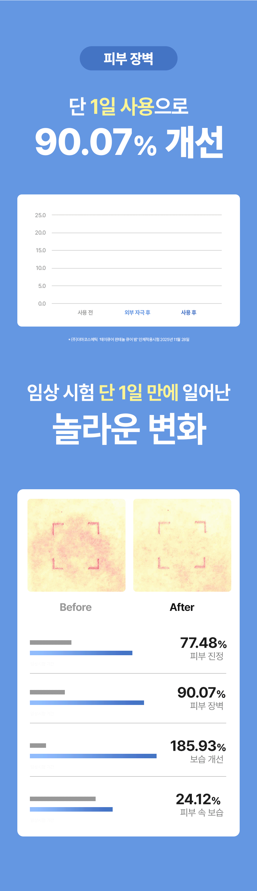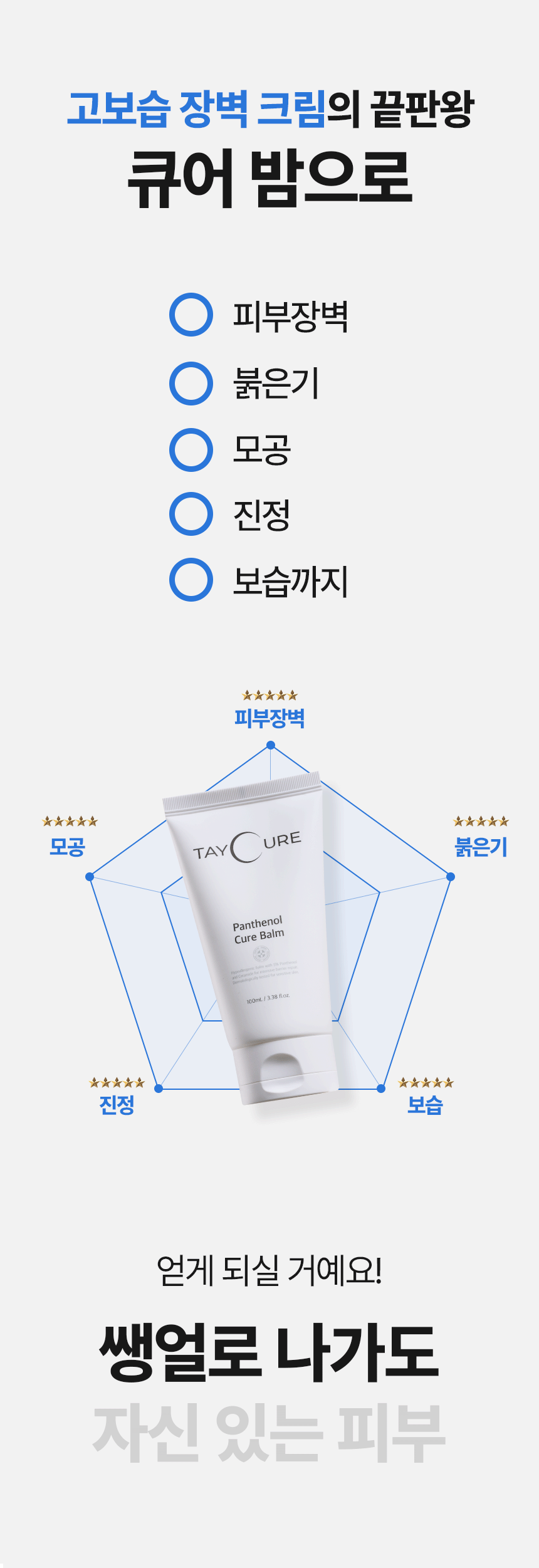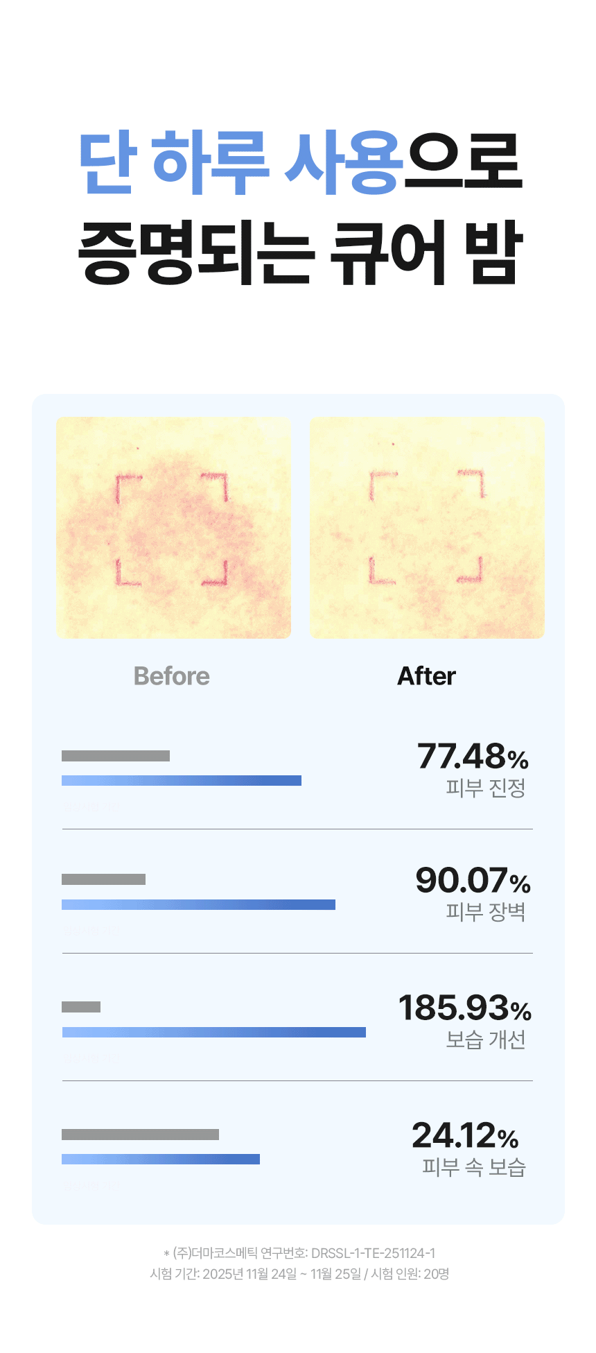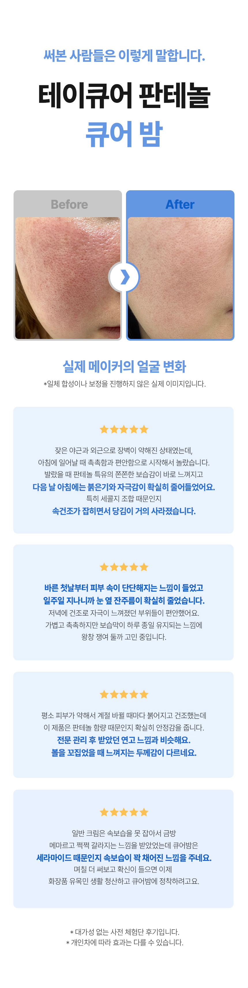 큐어 밤은 의약품 기준 함량인 50,000ppm을 적용해, 피부가 실제로 반응할 수 있는 농도로 설계했습니다.
