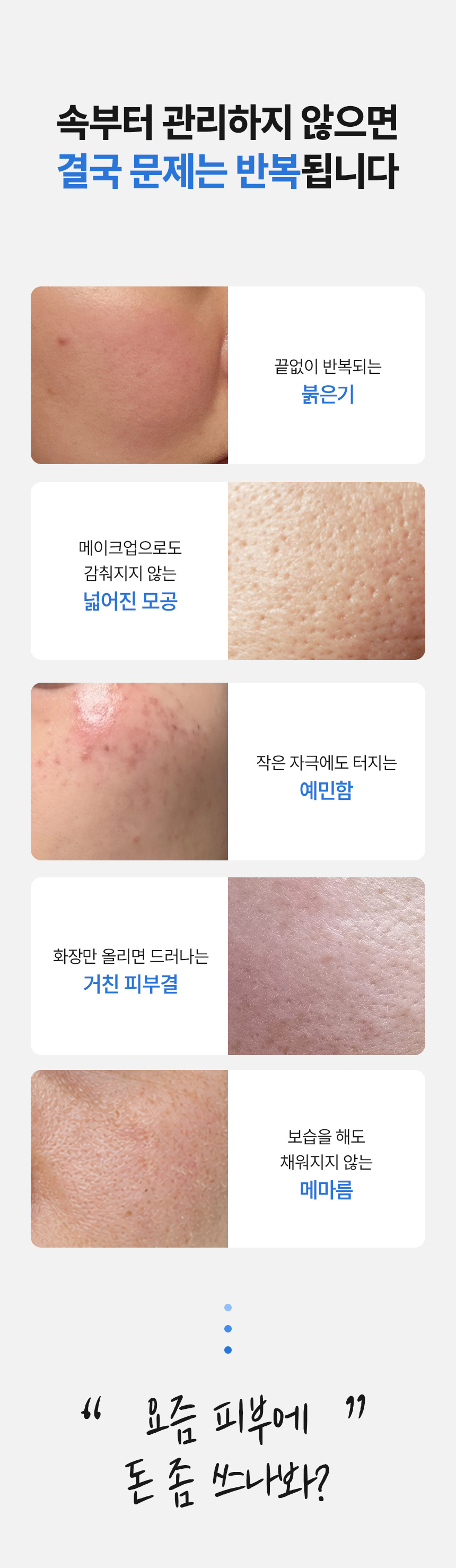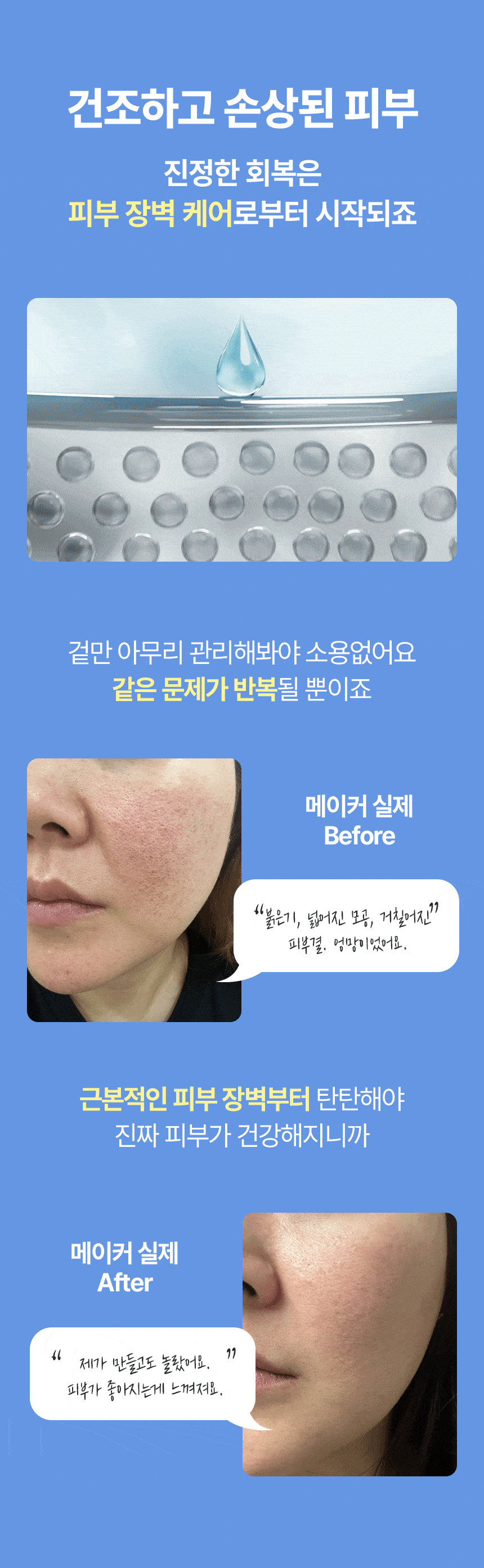 피부 컨디션이 회복된 이후에 토너나 세럼을 단계적으로 추가해 주세요.