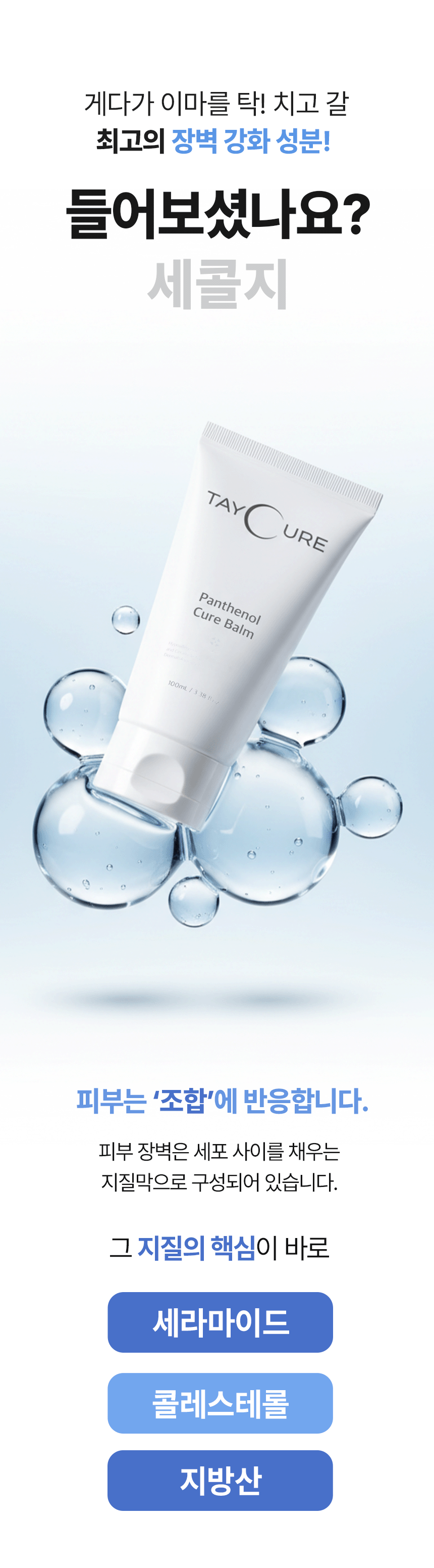 - 큐어 밤에 사용된 보르네오탈로우씨버터와 지질 성분은 피부 장벽 지질과 유사한 구조로,
