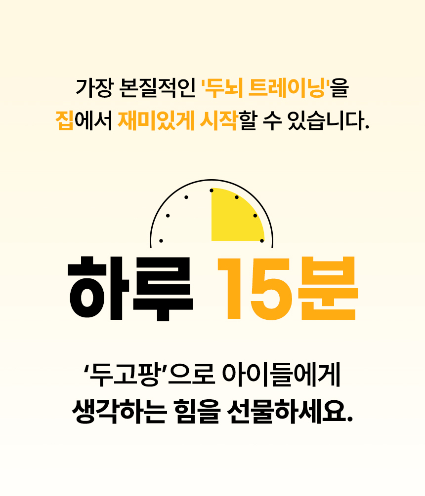 하루 15분, 두고팡을 통해 아이의 뇌세포가 깨어나고 스스로 생각하는 힘이 자라나는 놀라운 변화를 직접 경험해 보세요.