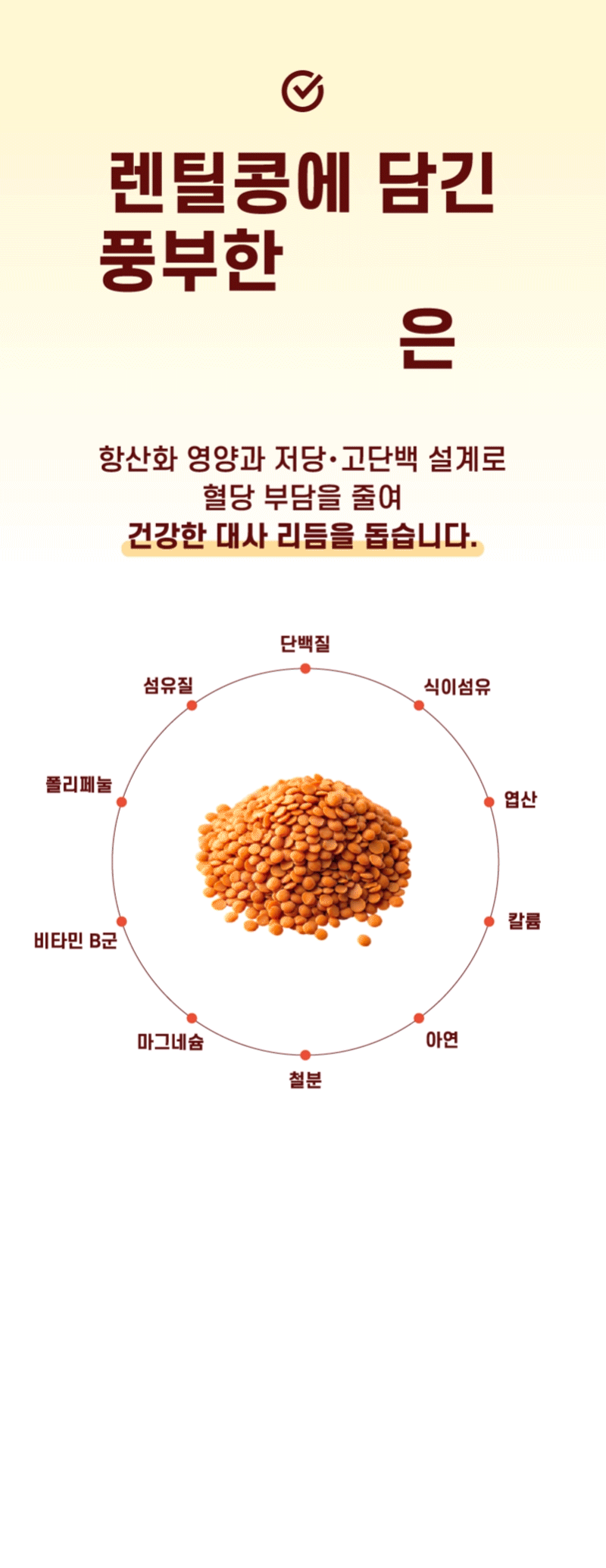 렌틸라는 렌틸콩의 영양을 일상의 미식으로 풀어낸 새로운 푸드 솔루션입니다.