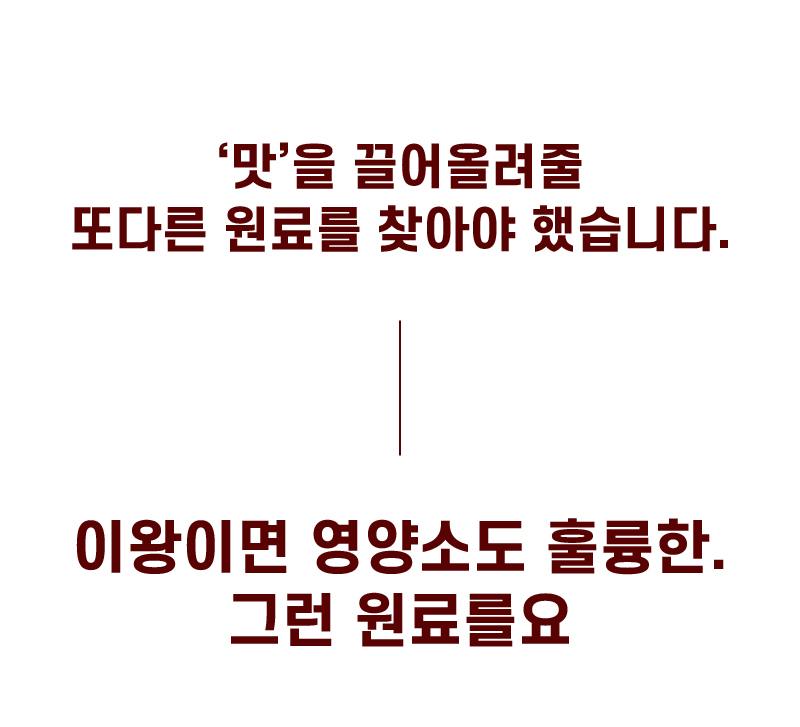 시중의 많은 건강식도 성분표를 먼저 확인해야 할 만큼신뢰하기 어려웠고, 건강을 위해 먹는 음식 조차 성분표를 먼저 확인 해야 했습니다.