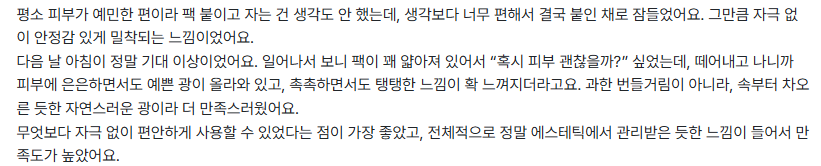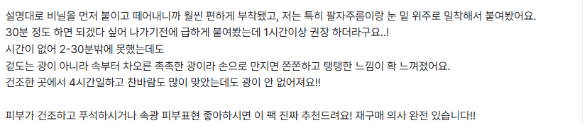⏱ 권장 시간 : 수면팩 대용 (밤새 부착)