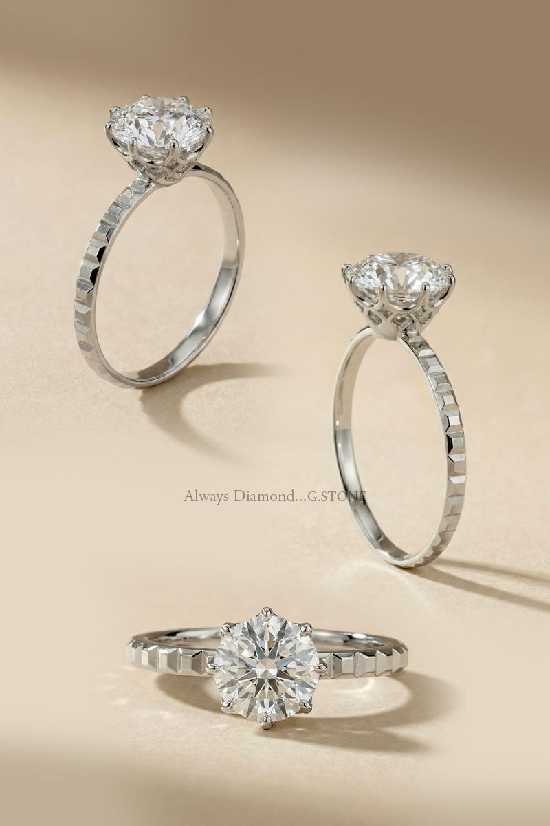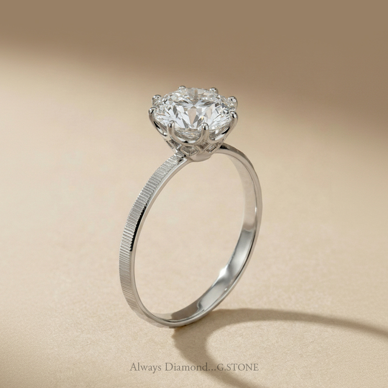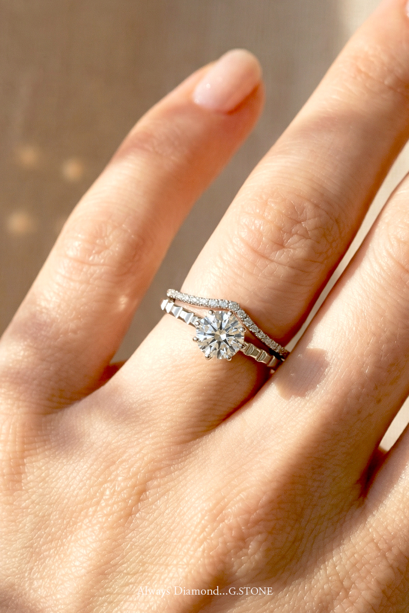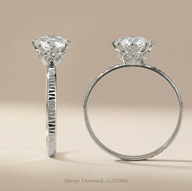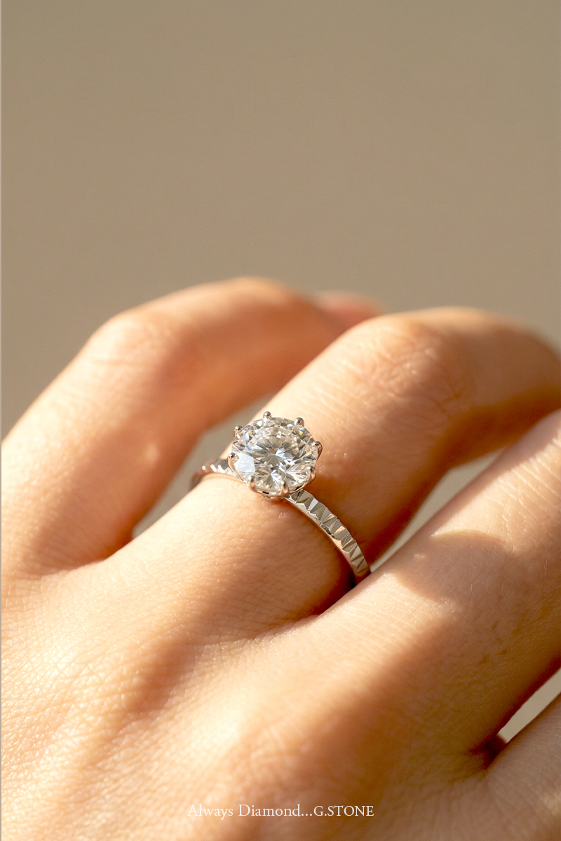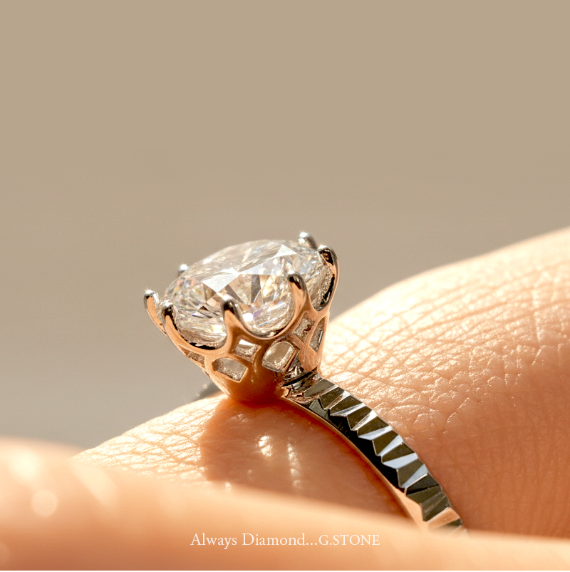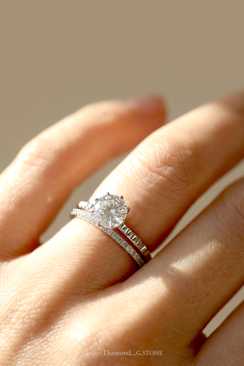 기계적이고 과한 일반 기계커팅과 다르게, 네추럴하고 고급스러워서 오랫동안 질리지 않고 캐럿 반지와 커플링으로도 인기가 많은 유럽 감성의 핸드메이드 커팅 기법