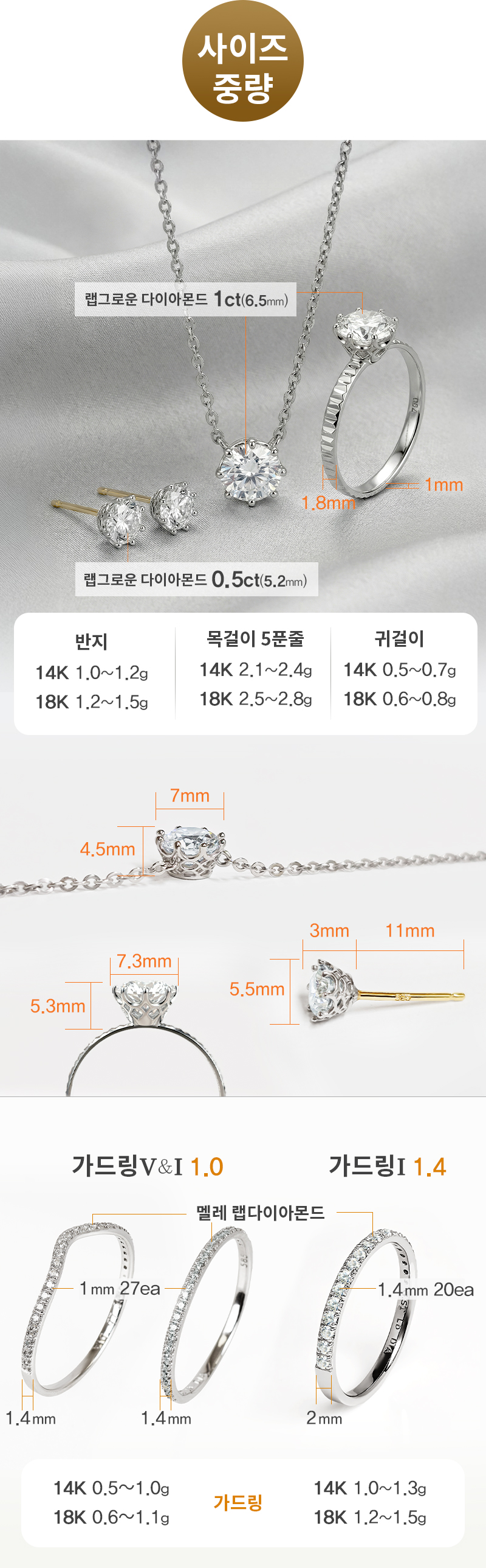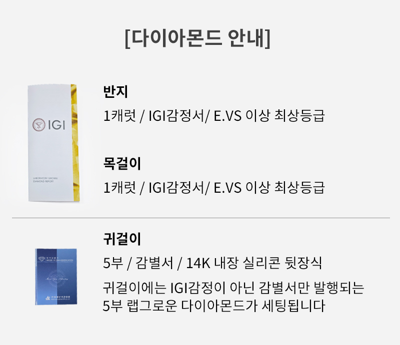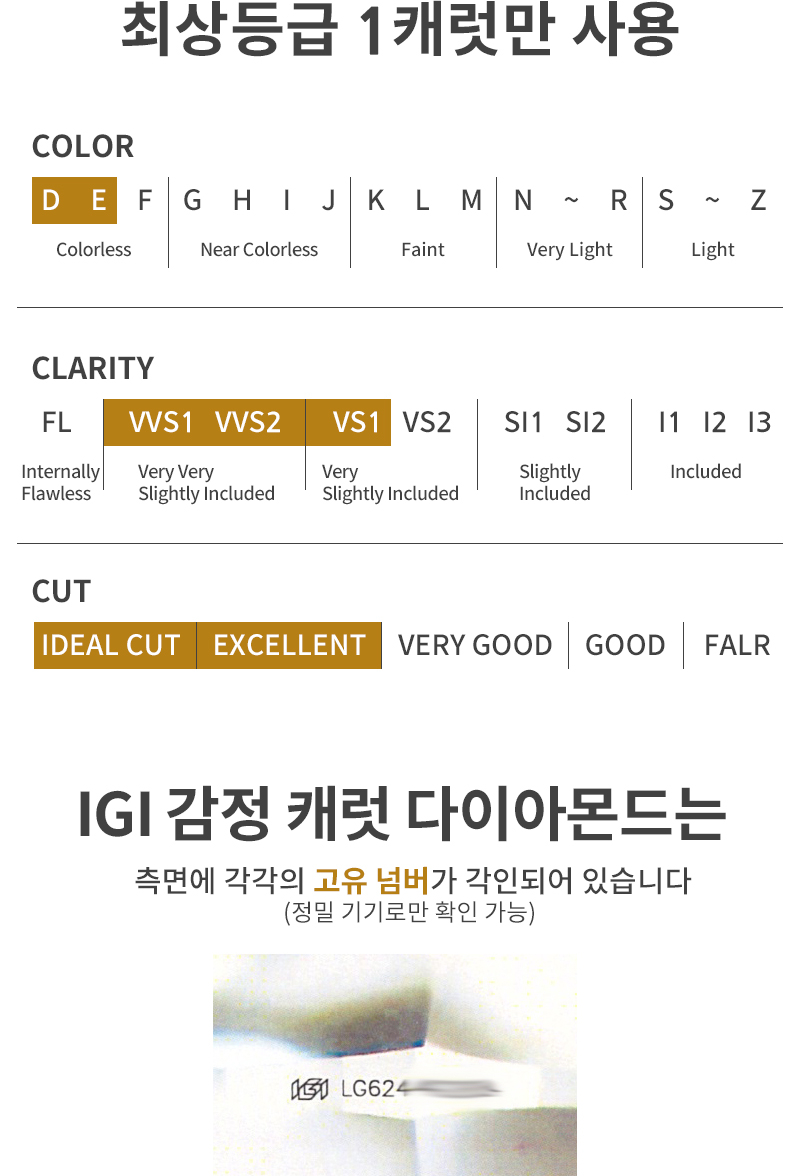 1) 표준 규격에 맞는 14K/18K골드 및 명시한 다이아몬드로만 제작합니다