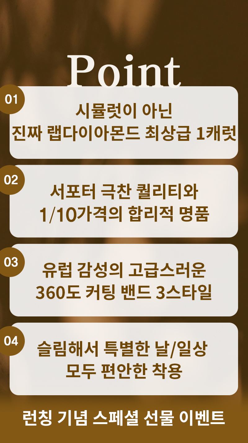 1캐럿 다이아몬드를 서포터들께 합리적으로 제공해드리고 싶어서 시작하게 되었습니다