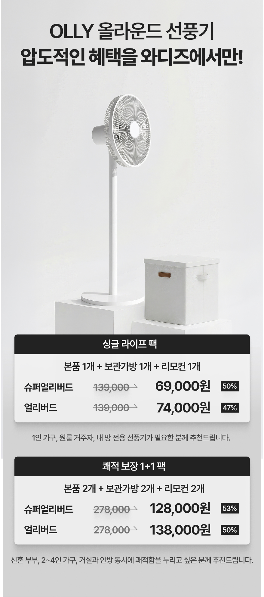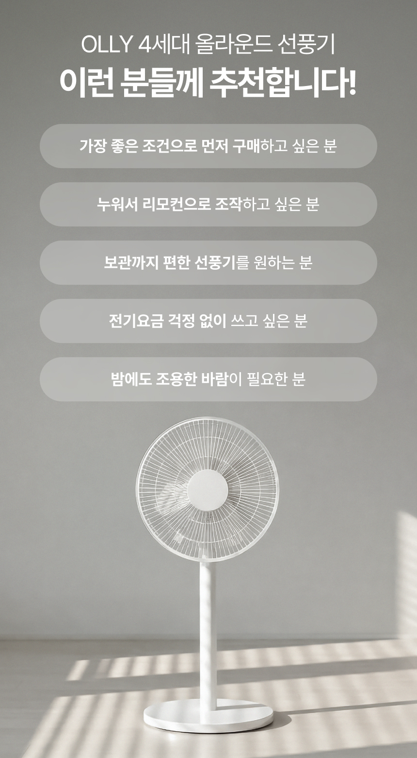 올리에서 발견한 더 나은 라이프 스타일. 일상의 변화를 이끌어내는 다양한 생활가전을 만드는 올리에서, 2026년 최초 와디즈 단독으로 공개하는 '올라운드 선풍기' 입니다.