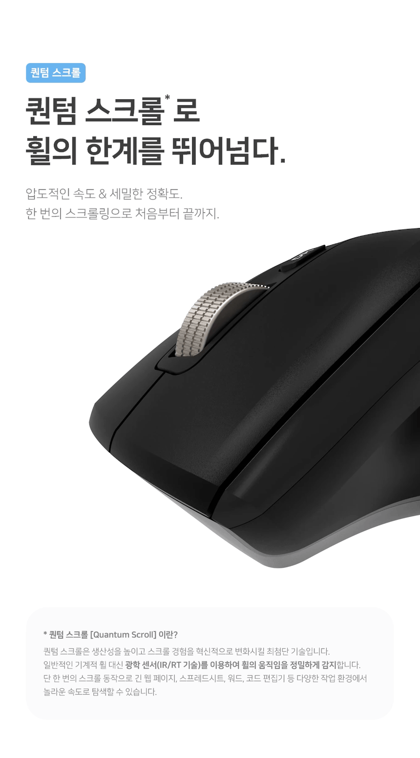 무선의 한계를 뛰어넘는 정밀한 컨트롤로, 휠을 돌리는 힘과 속도만으로도 정밀한 컨트롤까지 가능해집니다.