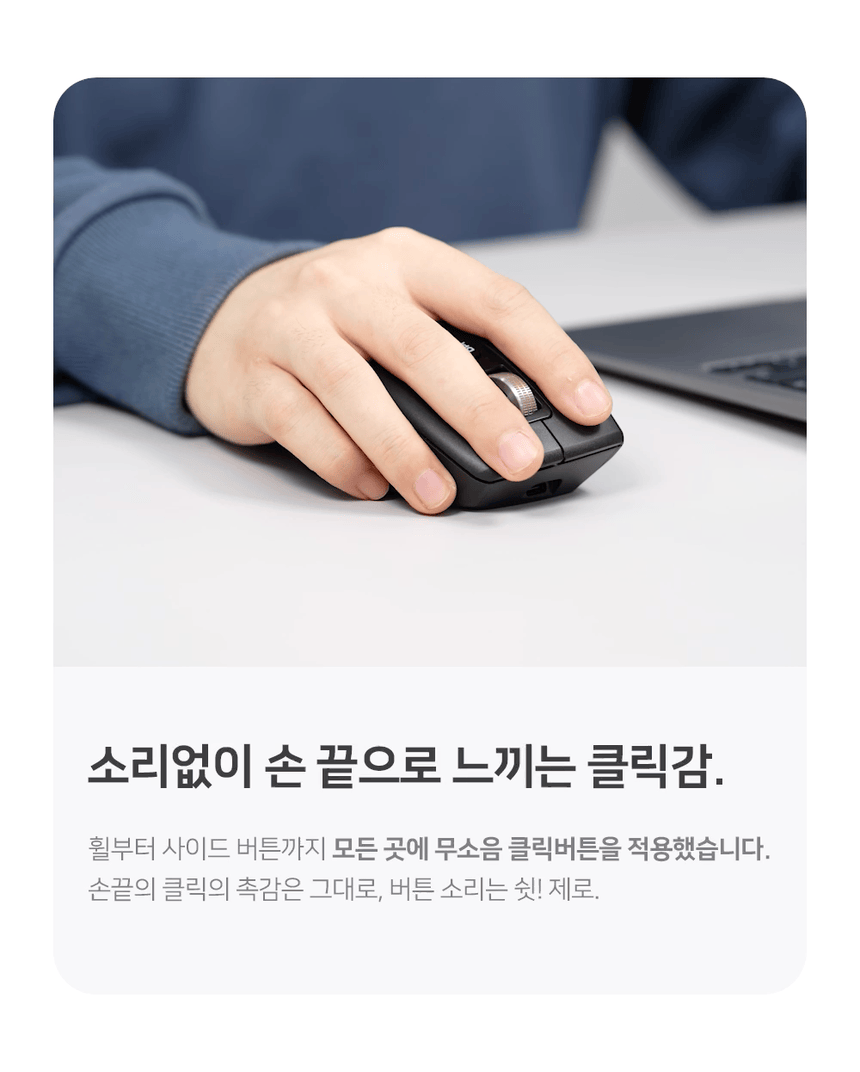 클릭해보시면 놀라실 수도 있어요. 소리는 조용한 무소음이지만, 마우스를 클릭하는 그 느낌만큼은 그대로 살렸습니다. 조용하지만 기분좋은 클릭감을 느끼실 수 있습니다.