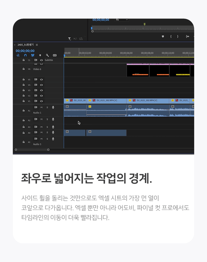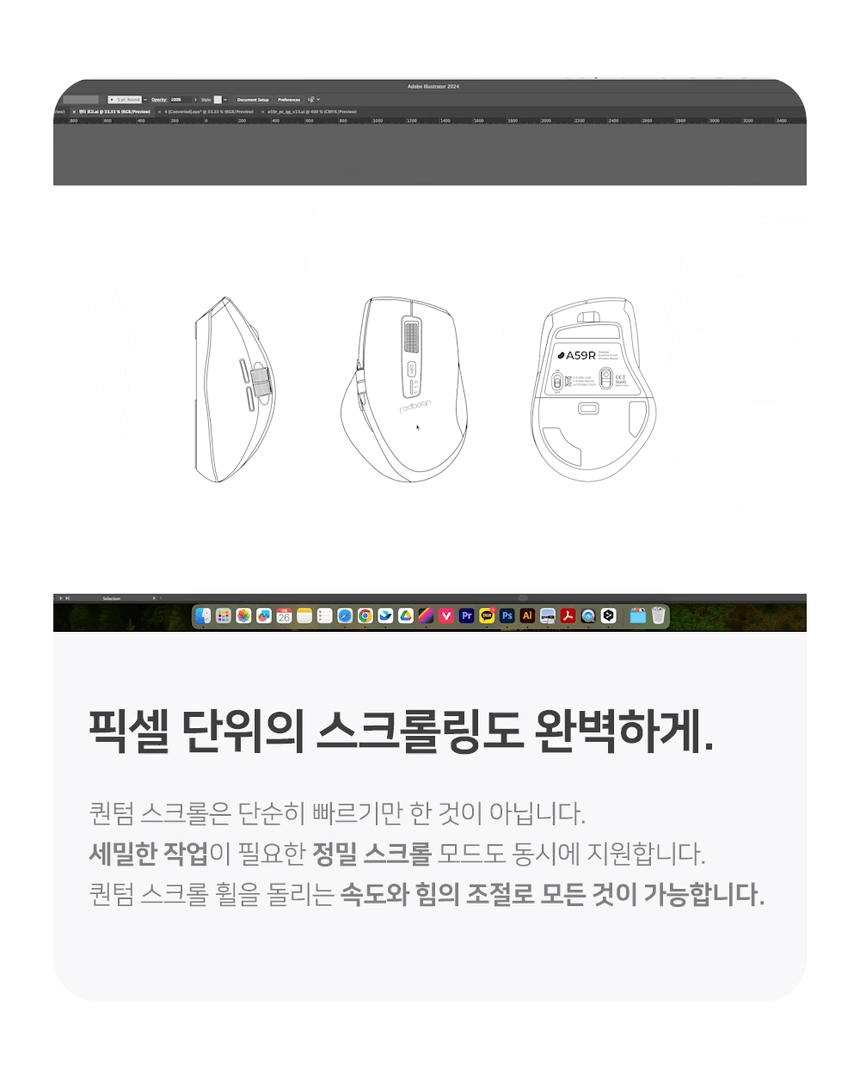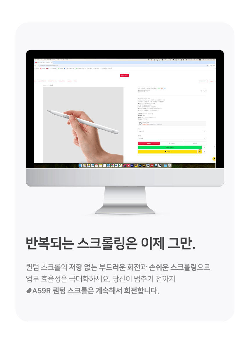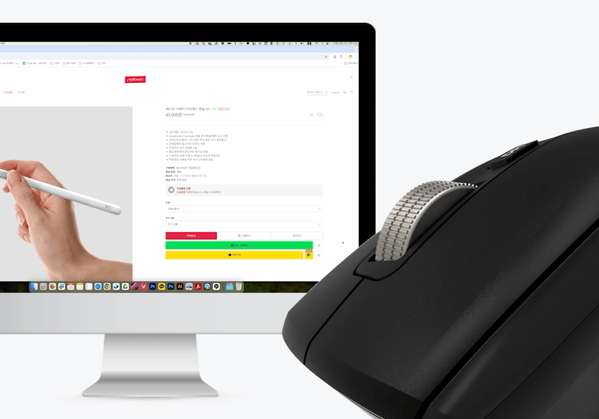 엑셀, 파이널컷, 어도비 모두 문제없죠. 좌우 작업 환경을 더욱 편리하게 만들어주는 유용한 사이드휠 기능. 써보시면 감탄하실걸요.