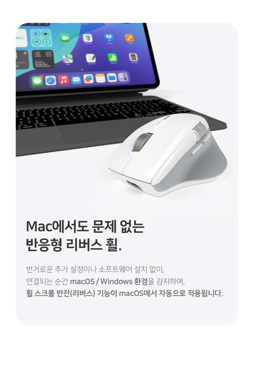 Mac으로 연결만 해주면, 연결되는 순간 자동으로 감지하여, 휠 스크롤 반전 (리버스) 기능이 적용됩니다.