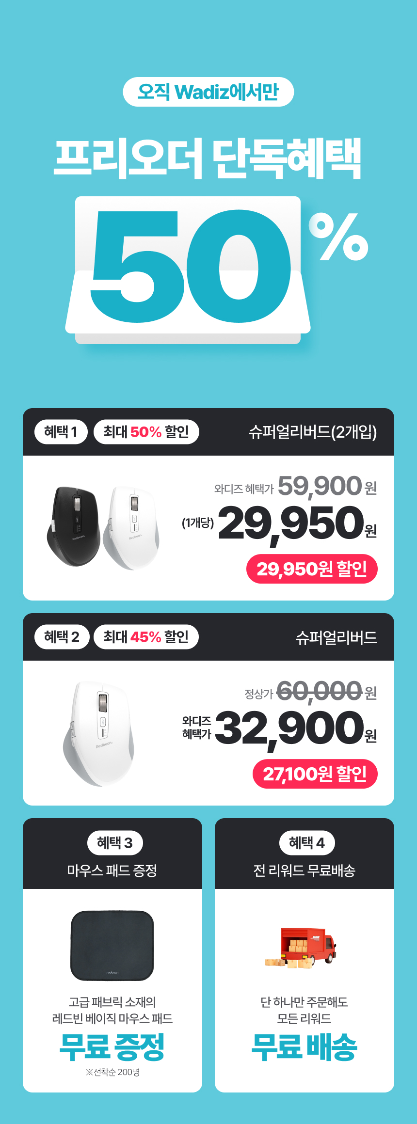 무한스크롤 무소음 마우스 본품 + (선착순) 전용 마우스 패드 +(단독혜택) 1개만 사도 무료배송 혜택까지.
