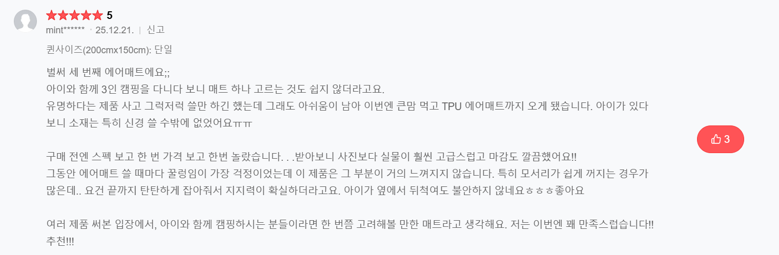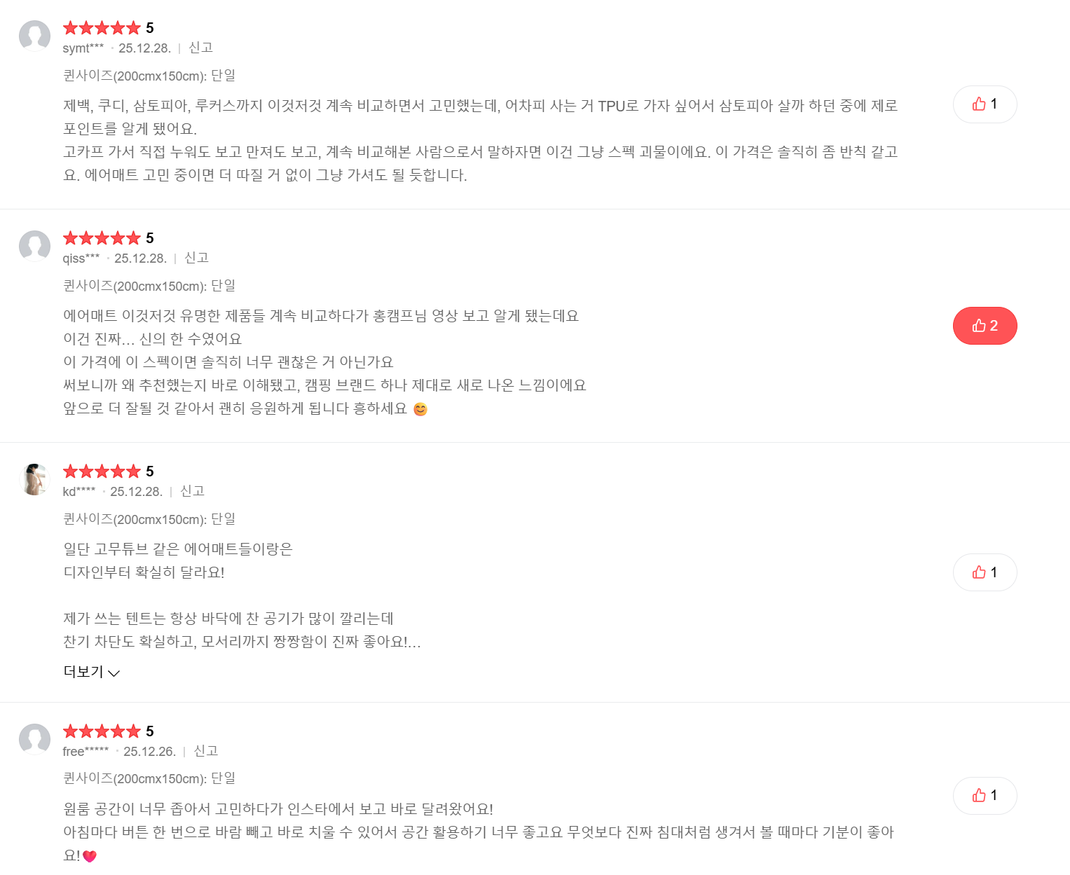 캠핑에 진심인 유튜버 홍캠프님 리뷰 혹은 호캠프님 리뷰도 확인해보세요.