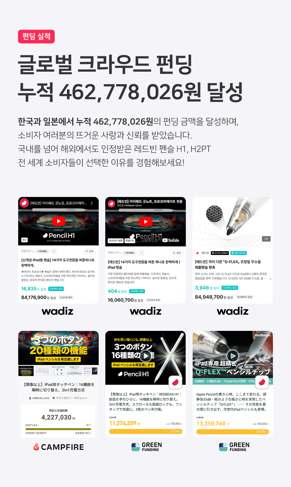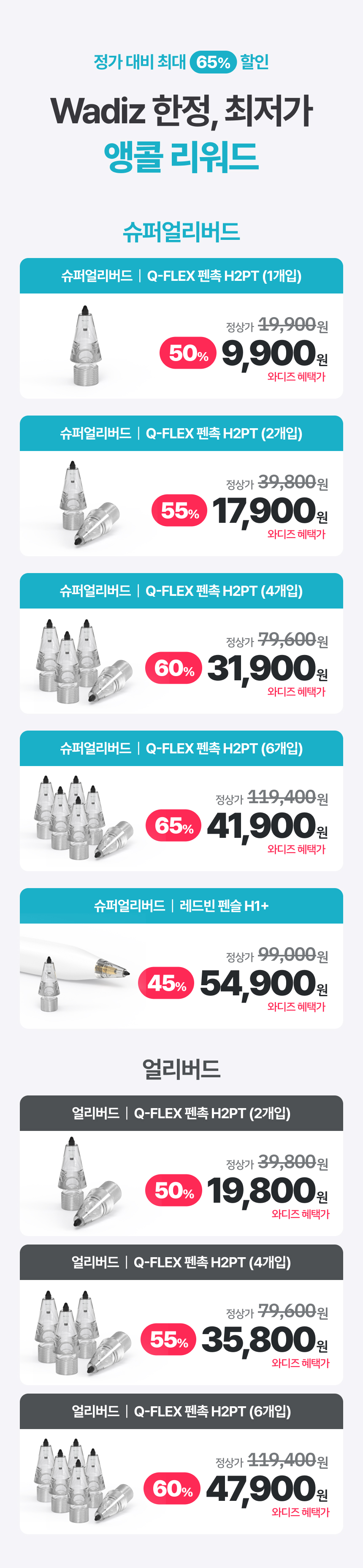 지난 프리오더 레드빈 Q-Flex 펜촉에 많은 사랑과 관심을 보내주신 서포터님들께 다시 한번 감사의 말씀 전합니다. 수많은 서포터님들의 앵콜요청으로 다시 한번 와디즈 특별혜택으로 돌아왔습니다. 손끝에서 전해지는 펜촉의 부드러움을 직접 확인해보세요!