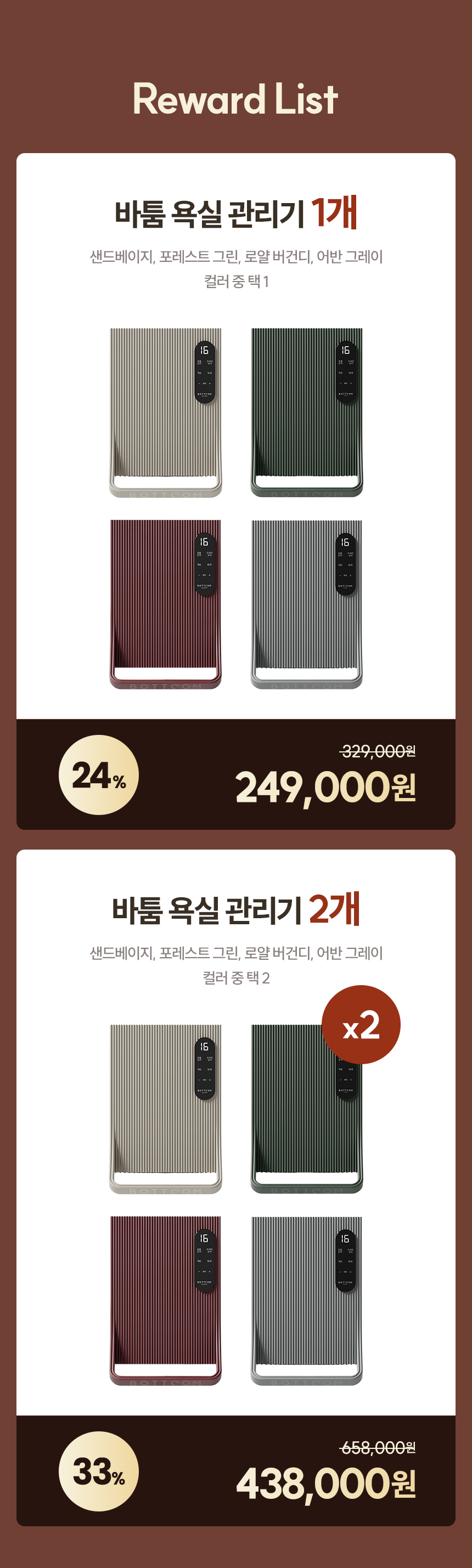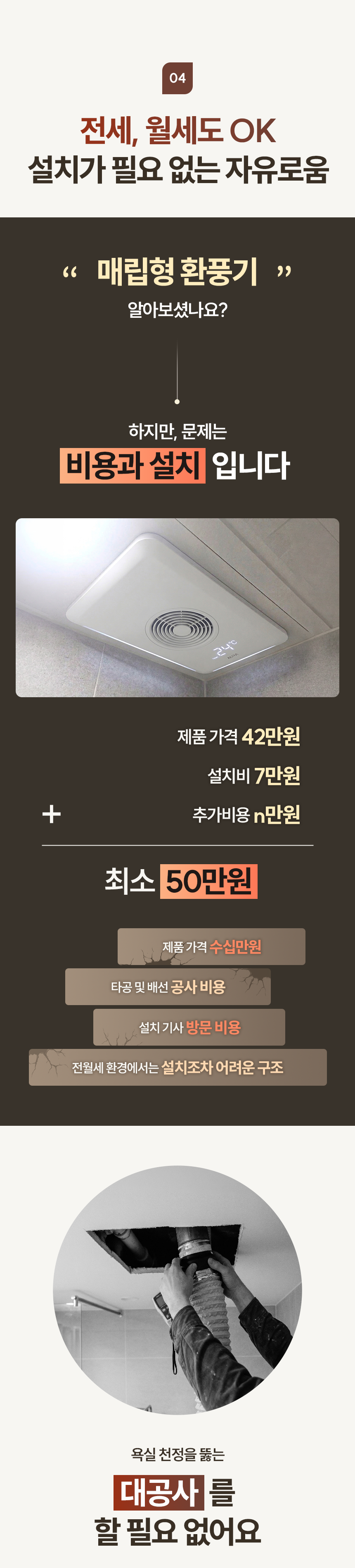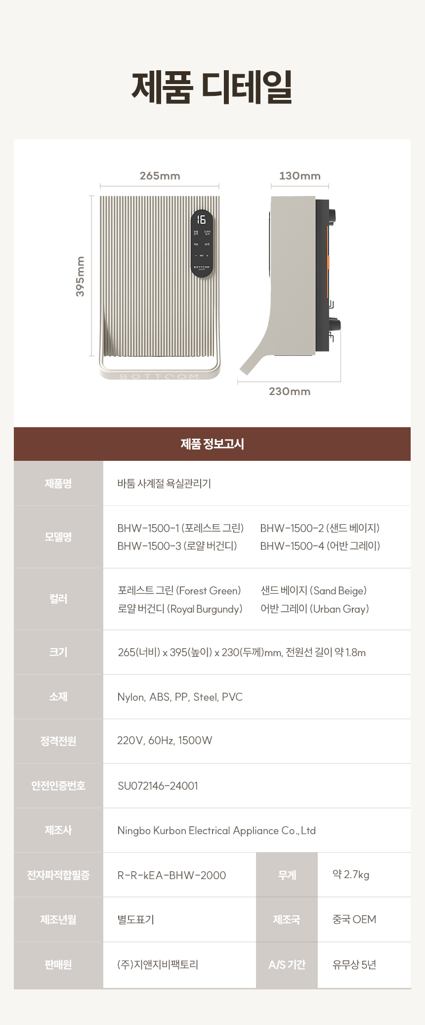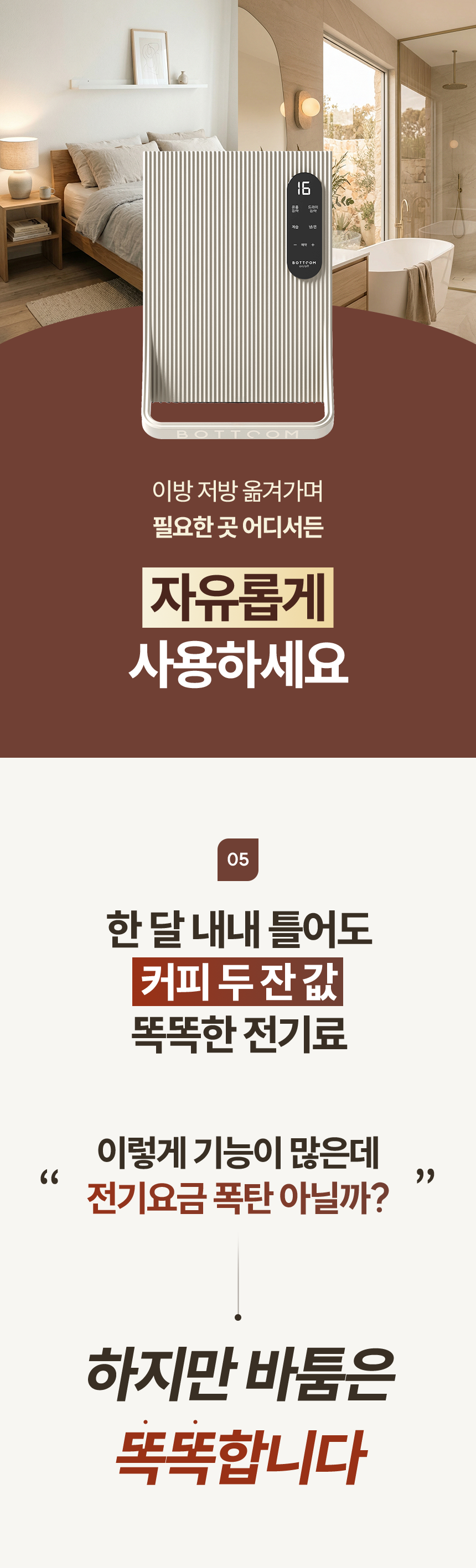1. 💨 초강력 욕실 건조기 - 풍속 8.3m/s로 욕실 바닥 물기 10배 빠르게 건조 2. 🌦️ 사계절 쾌적 욕실 관리 - 제습, 냉풍, 온풍, 바디드라이 기능 통합 제공 3. 🎯 와디즈 단독 특별가 - 249,000원 단독가로 경제적 부담 대폭 감소