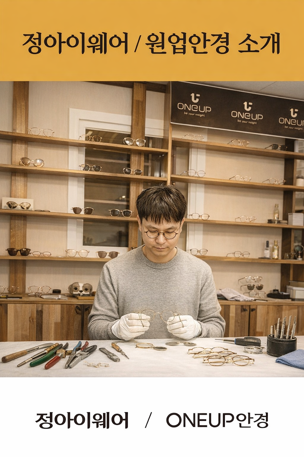 ONEUP은 30년 안경 제조 경험을 가진 장인들이 만든 브랜드입니다.