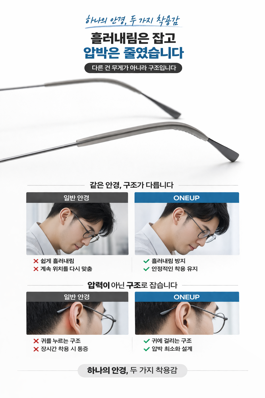 더 많은 분들이 ONEUP 안경의 차별화된 구조와 착용감을 경험하시길 바랍니다.