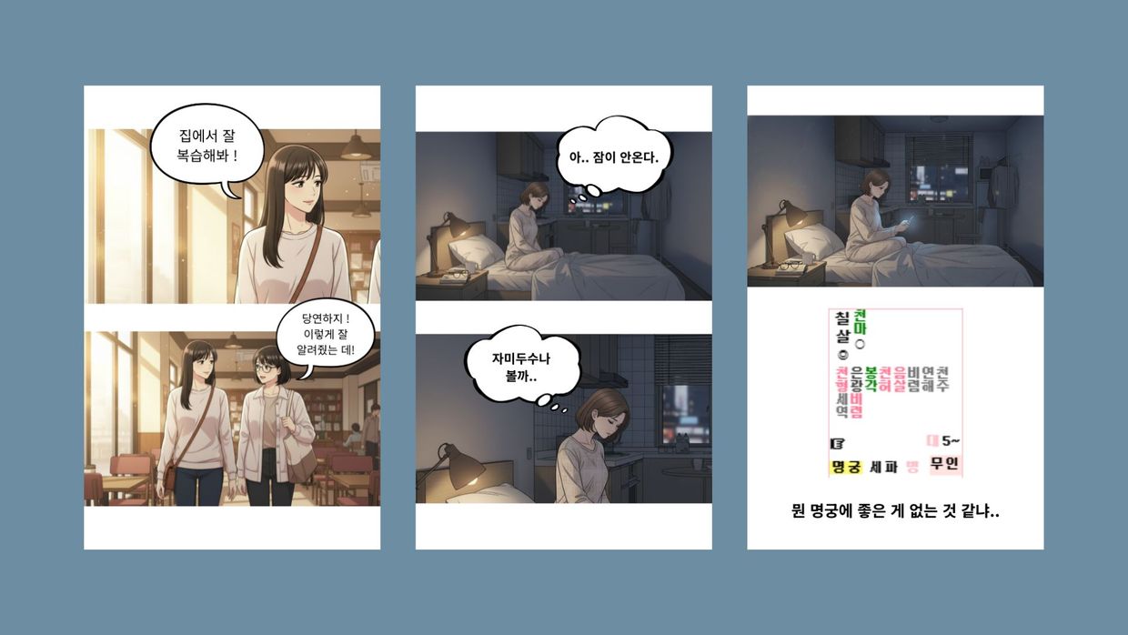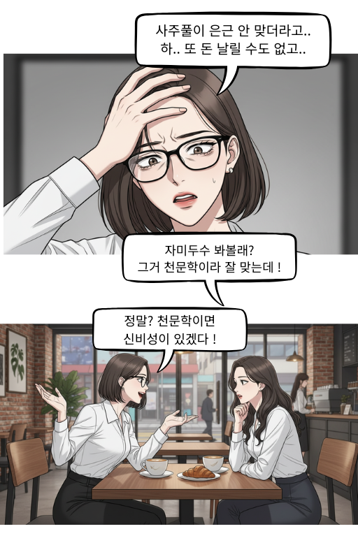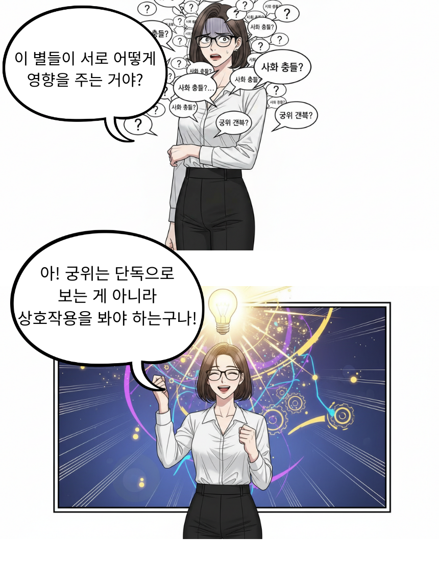 그래서 저는 “10살도 이해할 수 있는 웹툰”으로 자미두수를 풀어내기 시작했습니다. 복잡한 별자리와 궁위를 재미있는 스토리와 그림으로 풀어내다 보니, 처음 접하는 분들도 “아, 이게 이렇게 되는구나!” 하며 빠르게 이해하시더라고요.