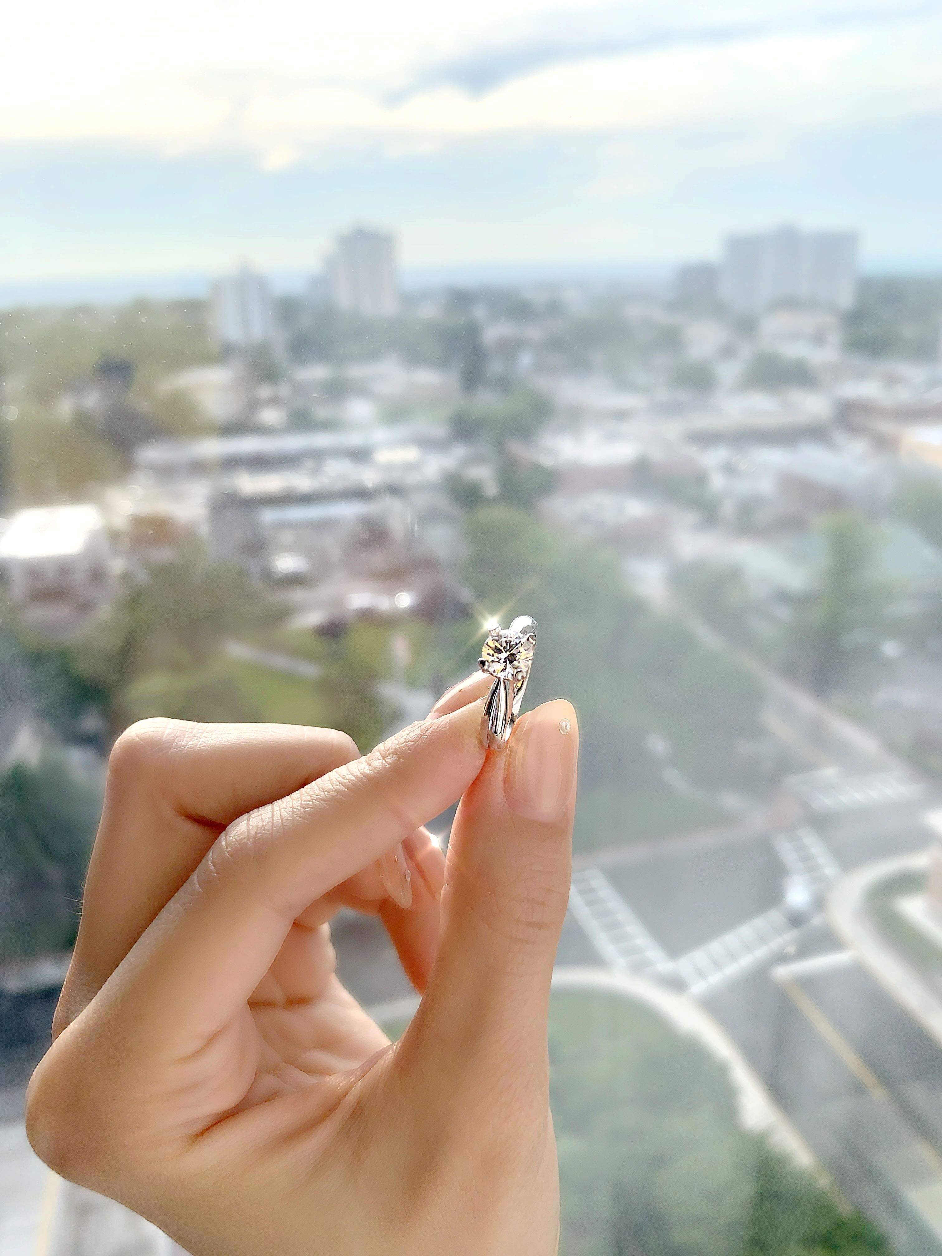 #하트링은 스톤의 빛 반사를 최대화하여, 4발로 스톤을 고정합니다. - 제이셀렉션만의 'Heart 하트' 프롱은 부드러운 곡선으로 다듬어져 옷이나 주변 물체에 걸릴 위험을 최소화합니다.