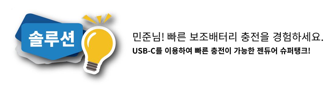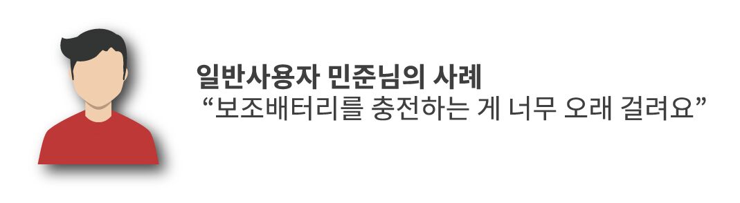 민준 서포터님! 많이 불편하셨죠? 이제 빠른 보조배터리 입력충전을 경험하세요.