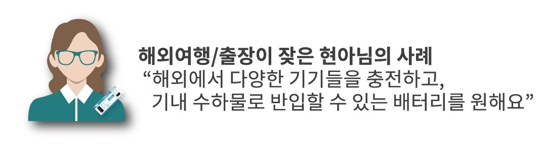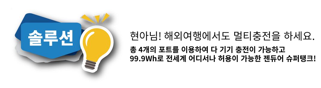 이번에 파리로 출장 겸 여행을 가게 되었습니다. 디자인과 컨텐츠를 담당하는 직무여서 스마트폰과 그 외 액션캠, 카메라, 노트북을 모두 짊어지고 다닐 것 같은데. 혹시 이 모든 걸 충전하면서 해외국가 허용 Wh 규정에 적합한 보조배터리 있을까요?