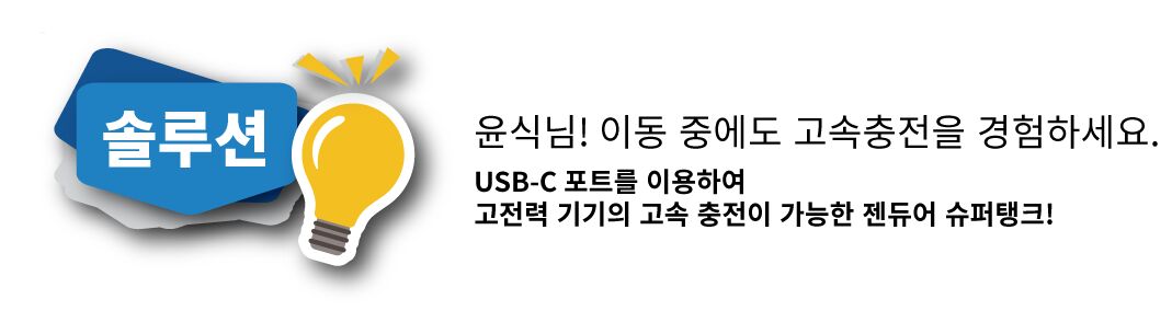 우리는 젠듀어 슈퍼탱크가 서포터분들에게 더욱 향상된 삶의 충전 경험을 가져다 주기를 바라고 있습니다.