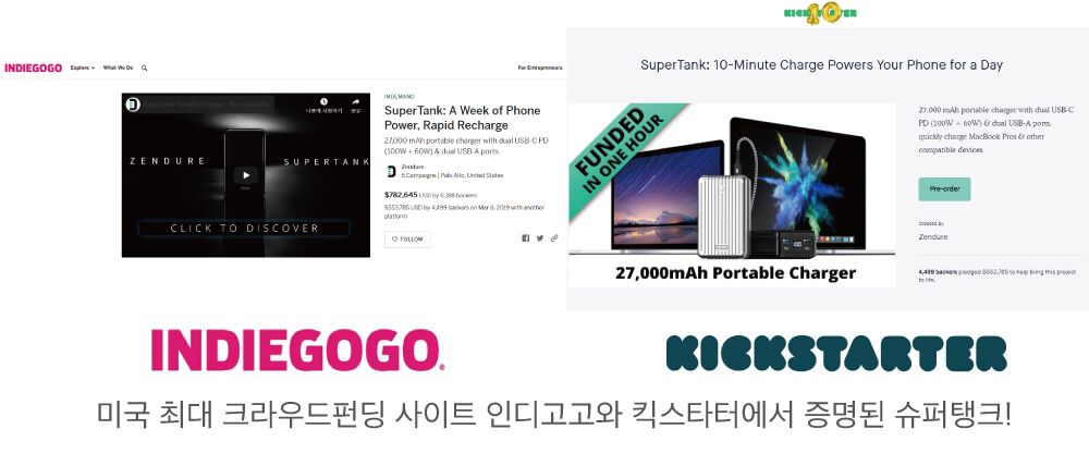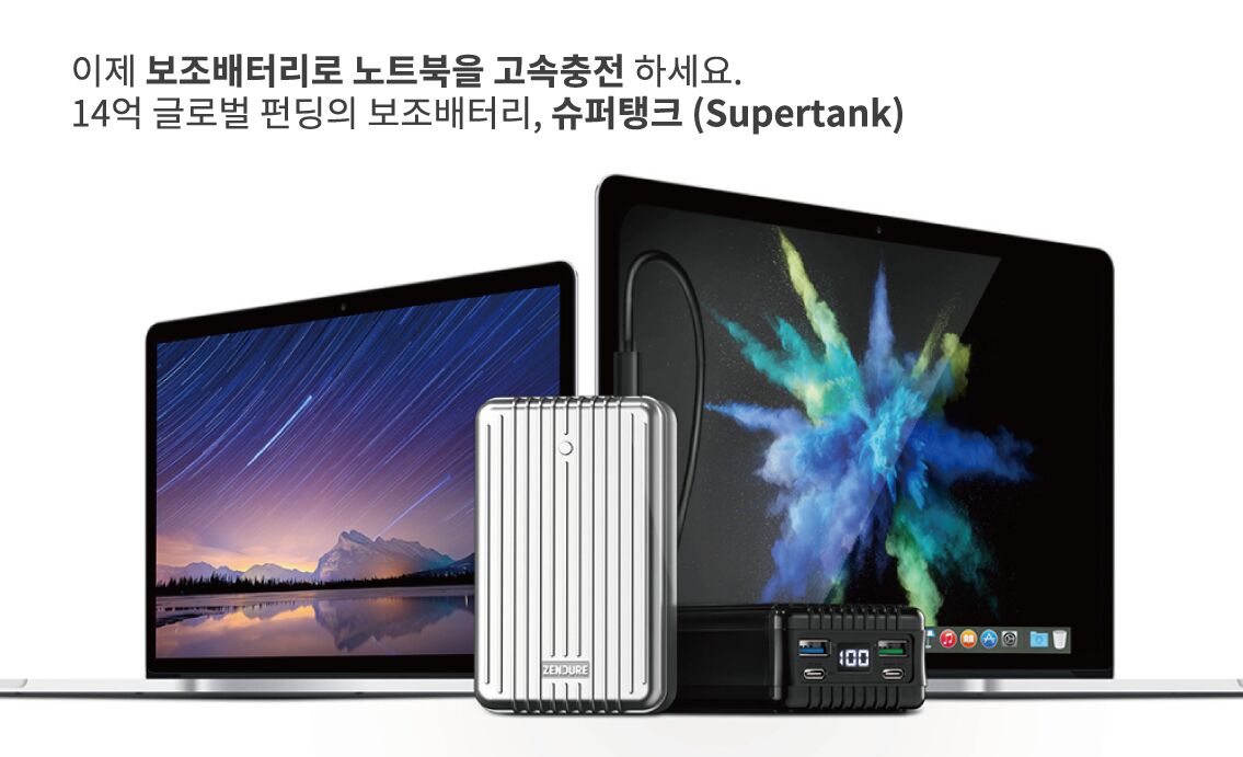 미국 크라우드펀딩인디고고와 킥스타터에서도 인정한 슈퍼탱크, 이제 보조배터리로 노트북을 고속충전 하세요. 글로벌 14억 펀딩 레코드, 슈퍼탱크 (Supertank)가 한국에 상륙했습니다!
