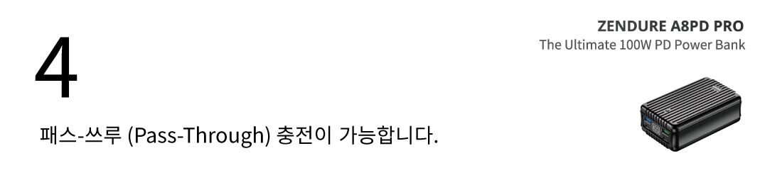 패스-쓰루 (Pass-Through) 충전이 가능합니다. USB-C 포트에 입력/출력을 이용하여 패스쓰루 충전이 가능합니다.