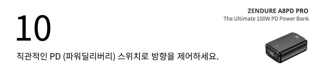 사용자의 노트북을 고속충전하시고, 직관적인 PD 스위치로 배터리를 충전하도록 바꿔보세요.